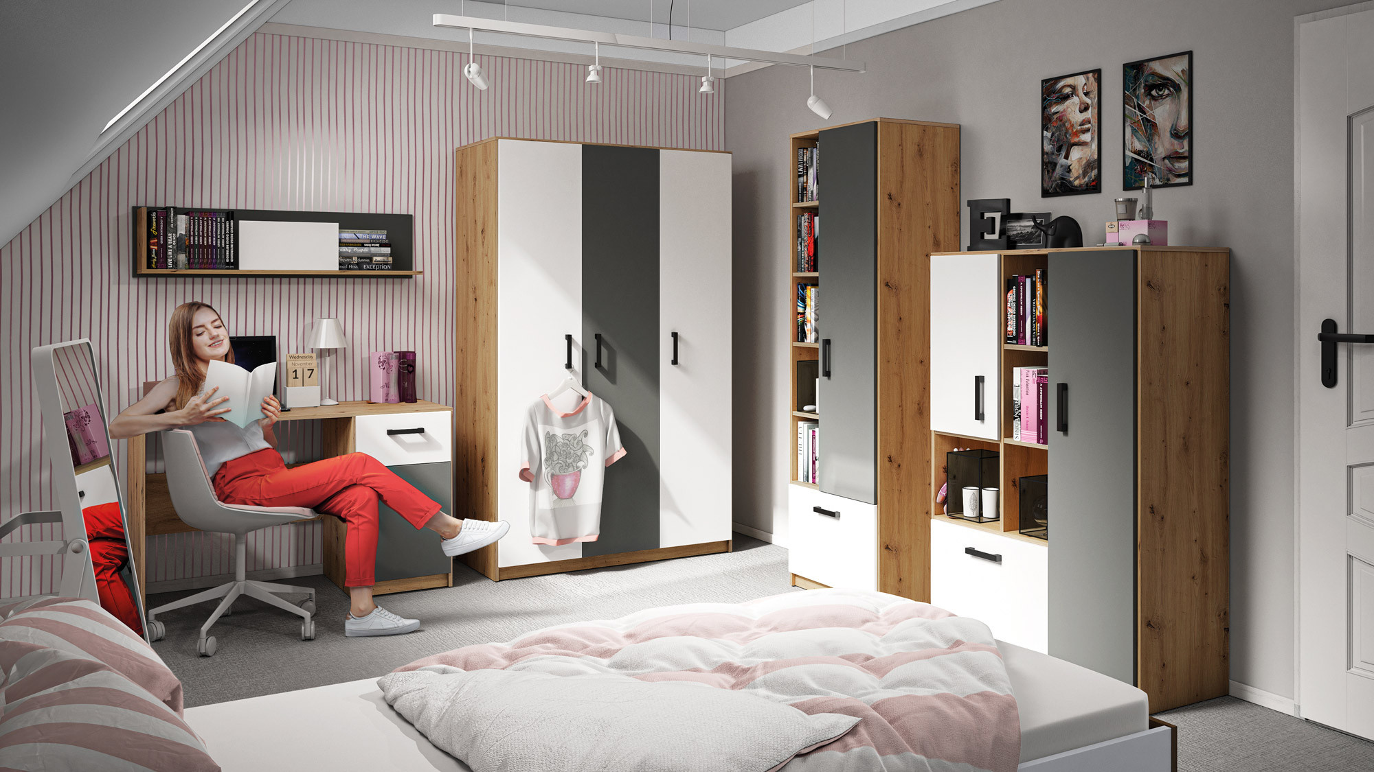Postel FINI 09, Dub Artisan/Bílá/Antracit
