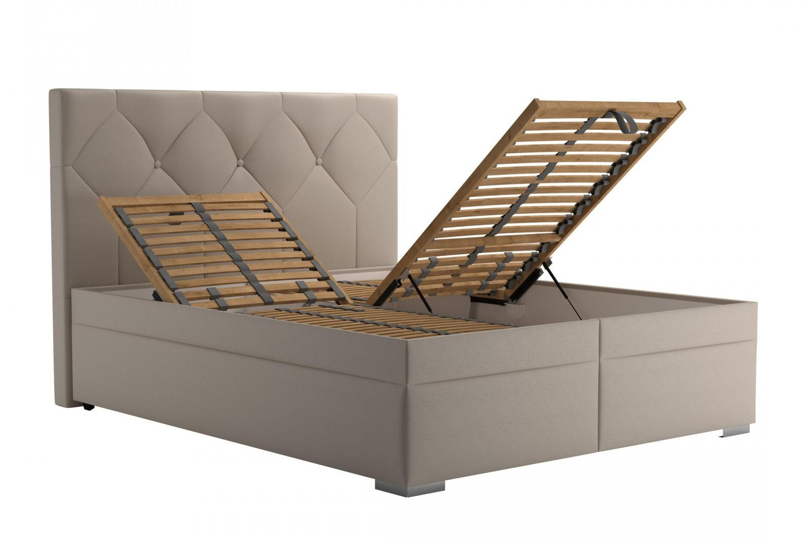 Úložný prostor lůžka se otevírá za pomoci plynových pístů od nohou postele.