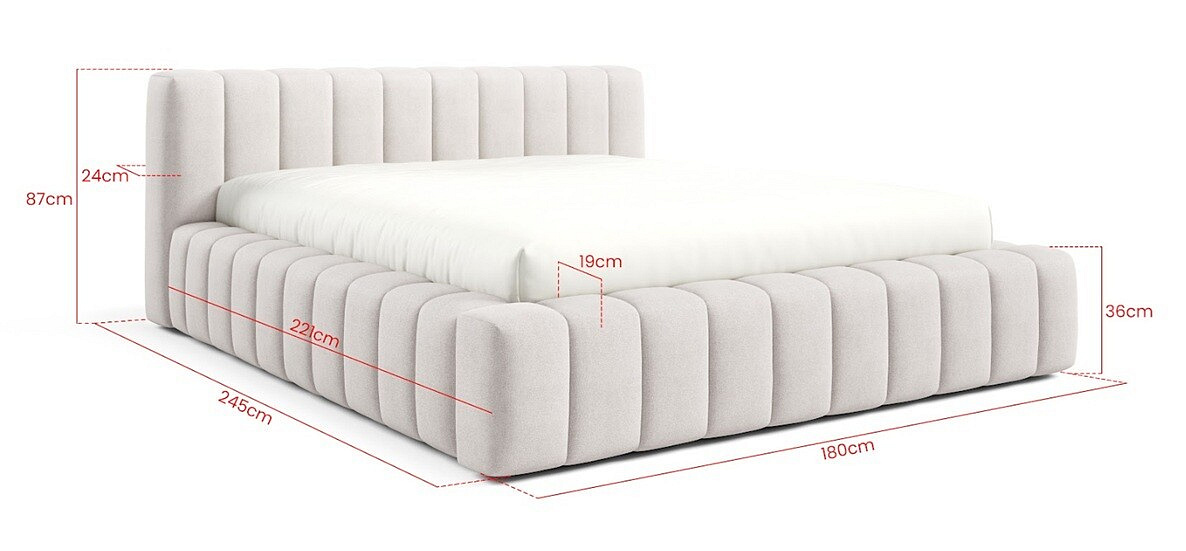 Postel GINO je potažena vysoce kvalitní potahovou látkou, která dodává interiéru nádech luxusu a elegance. Její jemná textura a odolnost zajišťují dlouhou životnost a snadnou údržbu. S rozměry spací plochy viz parametry produktu je ideální volbou pro jednotlivce, kteří si přejí prostorné a pohodlné lůžko.