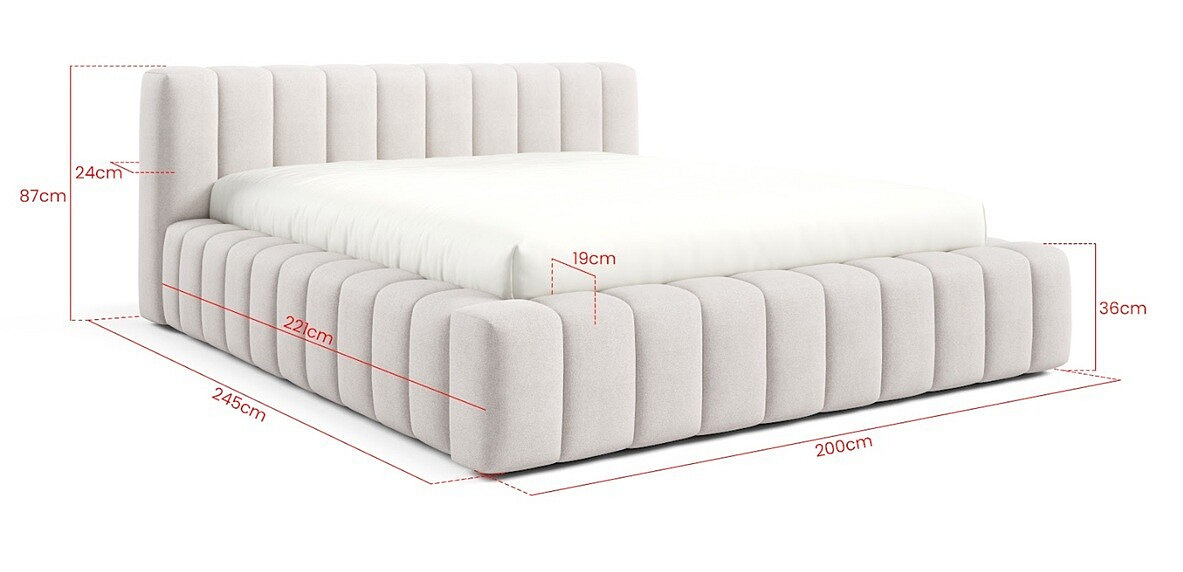 Postel GINO je potažena vysoce kvalitní potahovou látkou, která dodává interiéru nádech luxusu a elegance. Její jemná textura a odolnost zajišťují dlouhou životnost a snadnou údržbu. S rozměry spací plochy viz parametry produktu je ideální volbou pro jednotlivce, kteří si přejí prostorné a pohodlné lůžko.