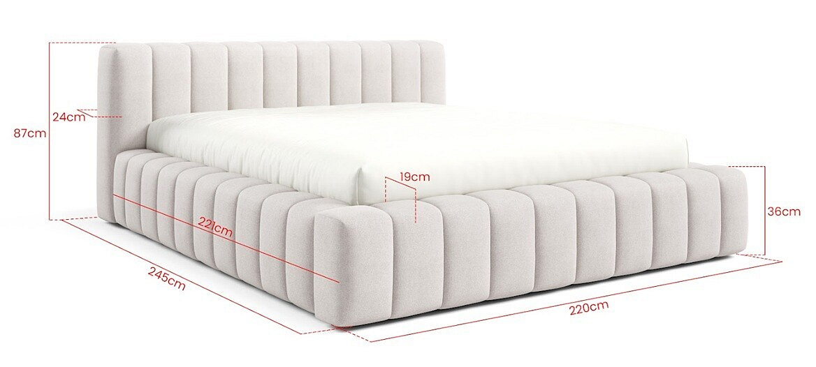 Postel GINO je potažena vysoce kvalitní potahovou látkou, která dodává interiéru nádech luxusu a elegance. Její jemná textura a odolnost zajišťují dlouhou životnost a snadnou údržbu. S rozměry spací plochy viz parametry produktu je ideální volbou pro jednotlivce, kteří si přejí prostorné a pohodlné lůžko.