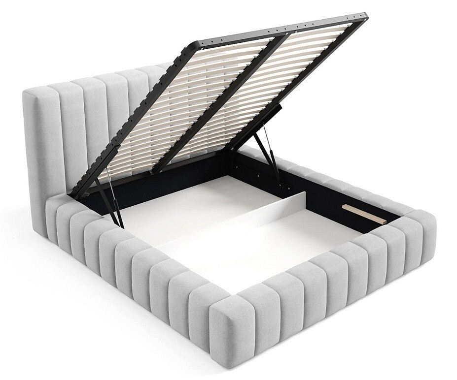 Jednou z hlavních předností této postele je její úložný prostor, který je ideální pro uskladnění ložního prádla, sezónního oblečení nebo dalších potřebných věcí. Můžete si vybrat mezi dřevěným nebo kovovým zvedacím rámem, který poskytuje snadný přístup k úložnému prostoru.