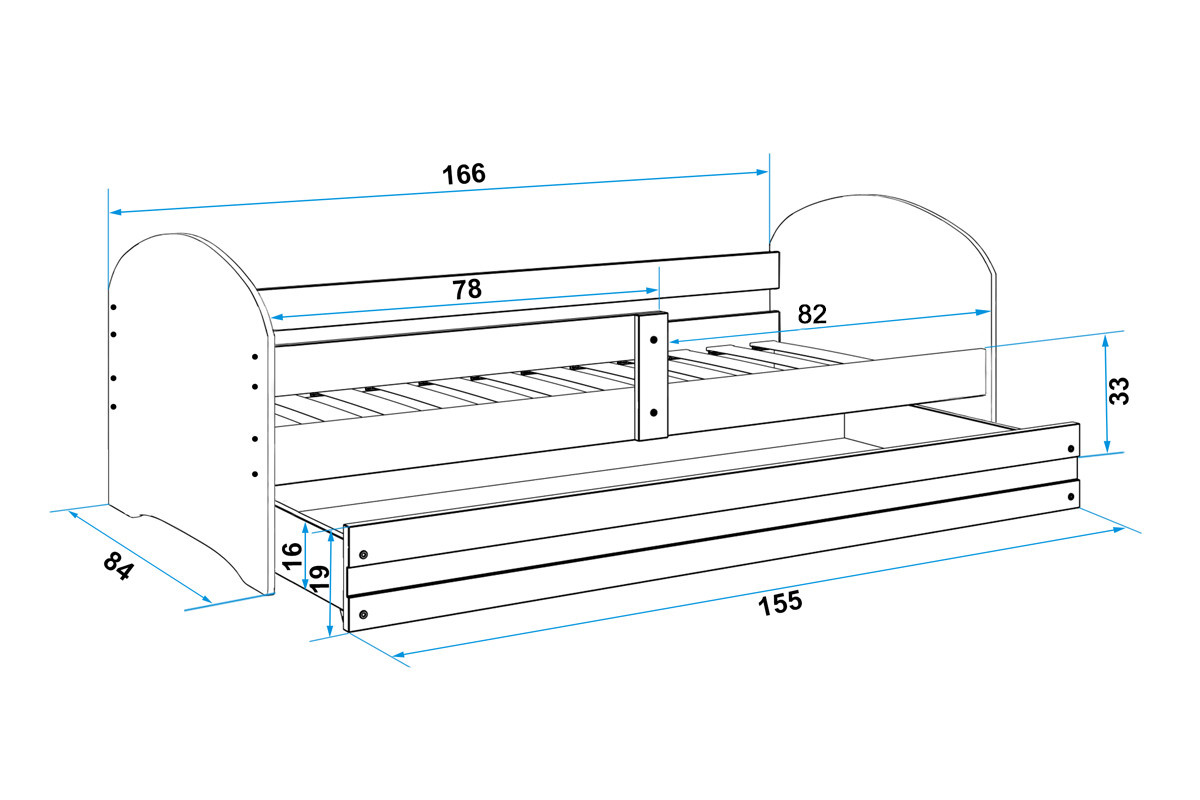 Dětská postel Hubert je určena pro ty, kteří pro své dítě hledají funkčnost, moderní design a kvalitu. Postel je vyrobena z borovicového dřeva v kombinaci s MDF deskou (bílé panely na bocích postele), na které se lepí obrázek s dětským motivem pro kluky i holky. Samolepky dodávané k posteli mají živé barvy s množstvím detailů. Vybírat můžete z velkého množství oblíbených hrdinů a postaviček z pohádek. Její stabilní konstrukce, zaoblené hrany a zábrana, která je v ceně postele, zajišťují bezpečnost a pohodlí dítěte. Zábranu si můžete podle potřeby umístit na pravou, nebo levou stranu postele. Součástí postele je také praktický úložný prostor na kolečkách, rošt a pěnová matrace se snímatelným potahem. Tloušťka matrace je 7cm. Plocha pro spaní je 80x160 cm. Postel je dodávána v demontu a součástí je montážní plánek včetně všech potřebných spojovacích materiálů. Vyobrazené dekorace nejsou v ceně.