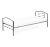 Jednolůžková postel o rozměru 90x200 cm v šedém matném provedení je vyrobena z pevného kovu, který zajišťuje stabilitu a dlouhou životnost. Rám postele tvoří jednoduché, ale pevné kovové profily s obloukově tvarovanými čely, která dodávají lehkost a moderní vzhled. Ložná plocha je tvořena kovovými latěmi, které poskytují dostatečnou oporu matraci a zároveň umožňují cirkulaci vzduchu. Povrchová úprava v matném stříbrném lesku je odolná vůči poškrábání a snadno se udržuje. Postel je vhodná pro standardní jednolůžkové matrace a díky své konstrukci je ideální do studentských pokojů, hostinských prostor nebo menších ložnic.