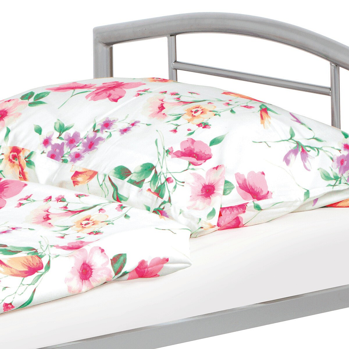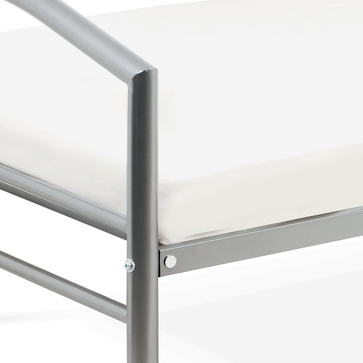 Jednolůžková postel o rozměru lůžka 90 x 200 cm je vyrobena z pevného kovu v elegantním šedém lesklém provedení. Robustní kovová konstrukce zajišťuje stabilitu a dlouhou životnost, přičemž rám je tvořený pevnými kovovými profily a příčkami, které rovnoměrně rozkládají váhu matrace a uživatele. Zaoblené čelo i nožky dodávají posteli moderní a zároveň jednoduchý vzhled vhodný do různých interiérů. Postel je navržena pro snadnou montáž a údržbu, materiál se snadno čistí a odolává běžnému opotřebení. Nosnost a přesné rozměry odpovídají standardům jednolůžkových postelí, což ji činí vhodnou volbou pro domácnosti i ubytovací zařízení.