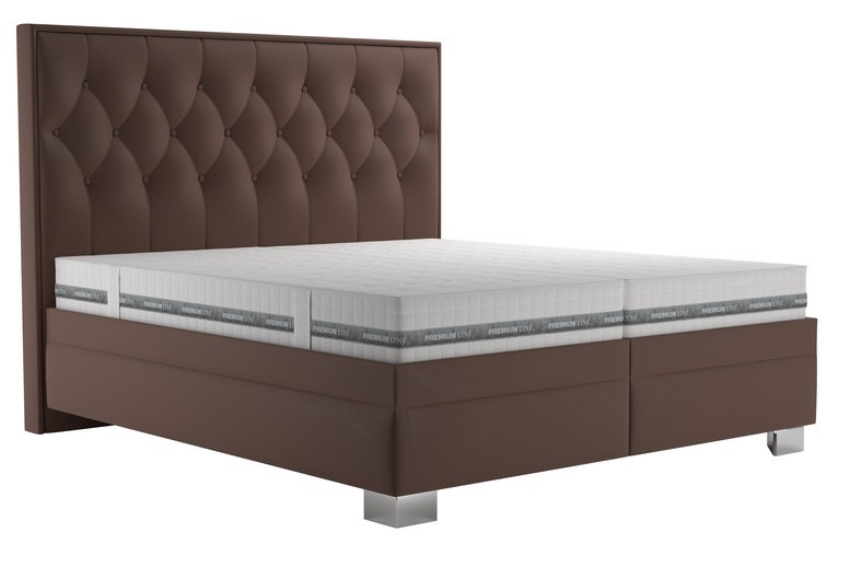 Elegantní manželská postel českého výrobce Kristin se stane díky efektně prošitému vysokému čelu dominantou každé ložnice.