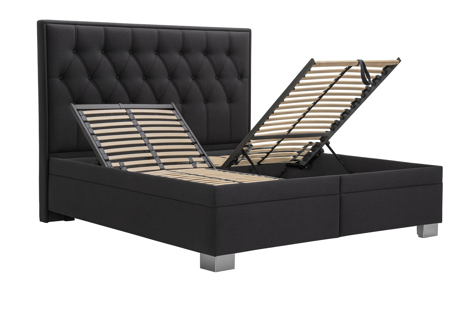 Úložný prostor lůžka se otevírá za pomoci plynových pístů od nohou postele.