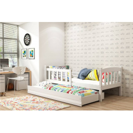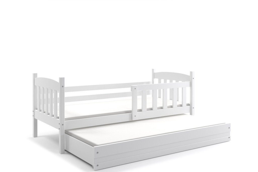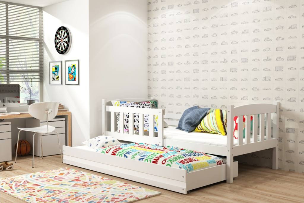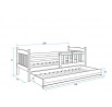 Dětská postel Kuba II je určena pro ty, kteří pro své dítě hledají funkčnost, pohodlí a kvalitu. Postel je vyrobena z borovicového dřeva. Její stabilní konstrukce, zaoblené hrany a zábrana, která je v ceně postele, zajišťují bezpečnost a pohodlí dítěte. Zábranu si můžete podle potřeby umístit na pravou, nebo levou stranu postele. Součástí postele je také praktická přistýlka s matrací, kterou můžete využít pro druhé dítě, nebo když u Vašeho dítěte bude chtít přespat kamarád/ka. Obě části postele mají rošt a pěnovou matraci se snímatelným potahem. Plocha pro spaní je 90x200 cm (vrchní část) a 80x190 cm (přistýlka). Postel je dodávána v demontu a součástí je montážní plánek včetně všech potřebných spojovacích materiálů. Vyobrazené dekorace nejsou v ceně.