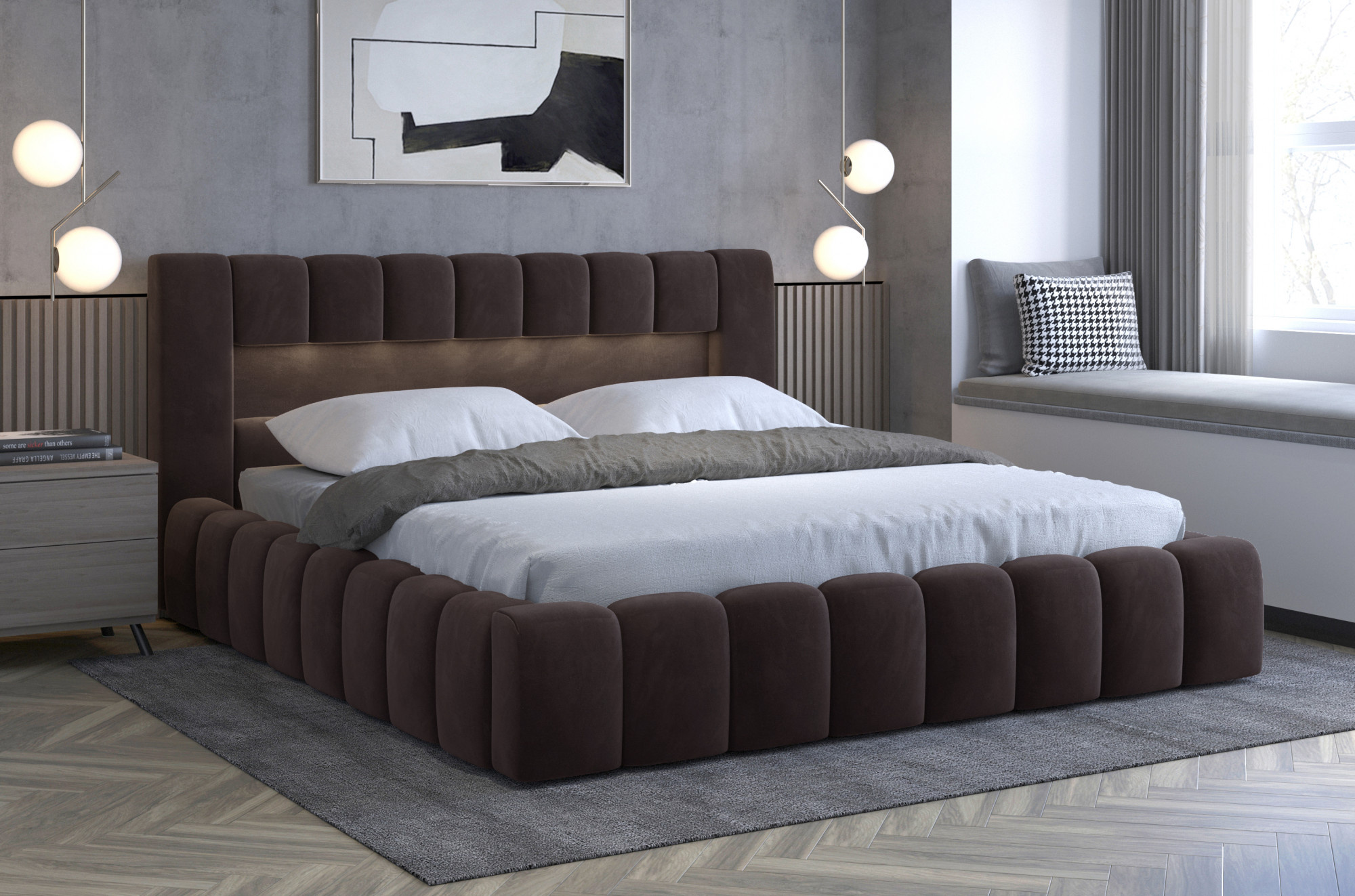 Lamica je velmi pohodlná, měkká a originální postel v glamour stylu, která zaujme svým neobvyklým tvarem a formou. Tento nábytek se skládá z těla a kovového rámu. Má také dva prostorné kontejnery na ložní prádlo. Rozměry spací plochy - můžete si vybrat ze tří verzí - 140/160/180x200 cm - poskytují dostatečný prostor pro relaxační odpočinek v ložnici různých velikostí, což bude vyhovovat vašim preferencím a možnostem. Naše postel se vyznačuje svým zpracováním, protože vysoké čelo a boky postele jsou vytvořeny s přídavnou pěnou. Estetický zážitek je umocněn podélným, rozsáhlým prošíváním. Široká škála barevných možností usnadňuje sladění postele s celou místností. Další výhodou je opěrka hlavy s LED osvětlením, díky kterému bude odpočinek ještě příjemnější. V tomto případě jde modernost a modernistický vzhled ruku v ruce s elegancí, díky čemuž bude Lamica vždy ideální volbou. Určitě stojí za to mít.