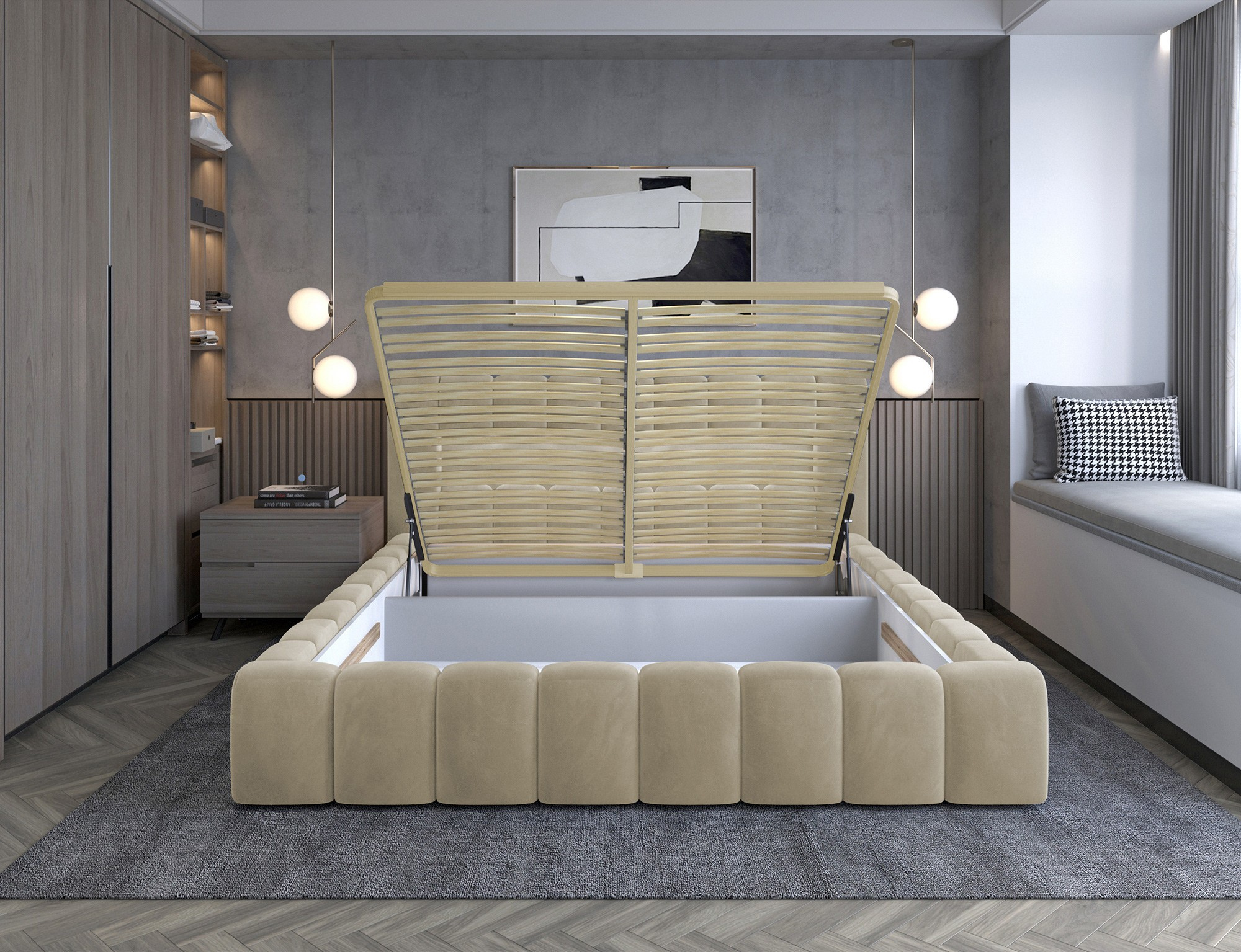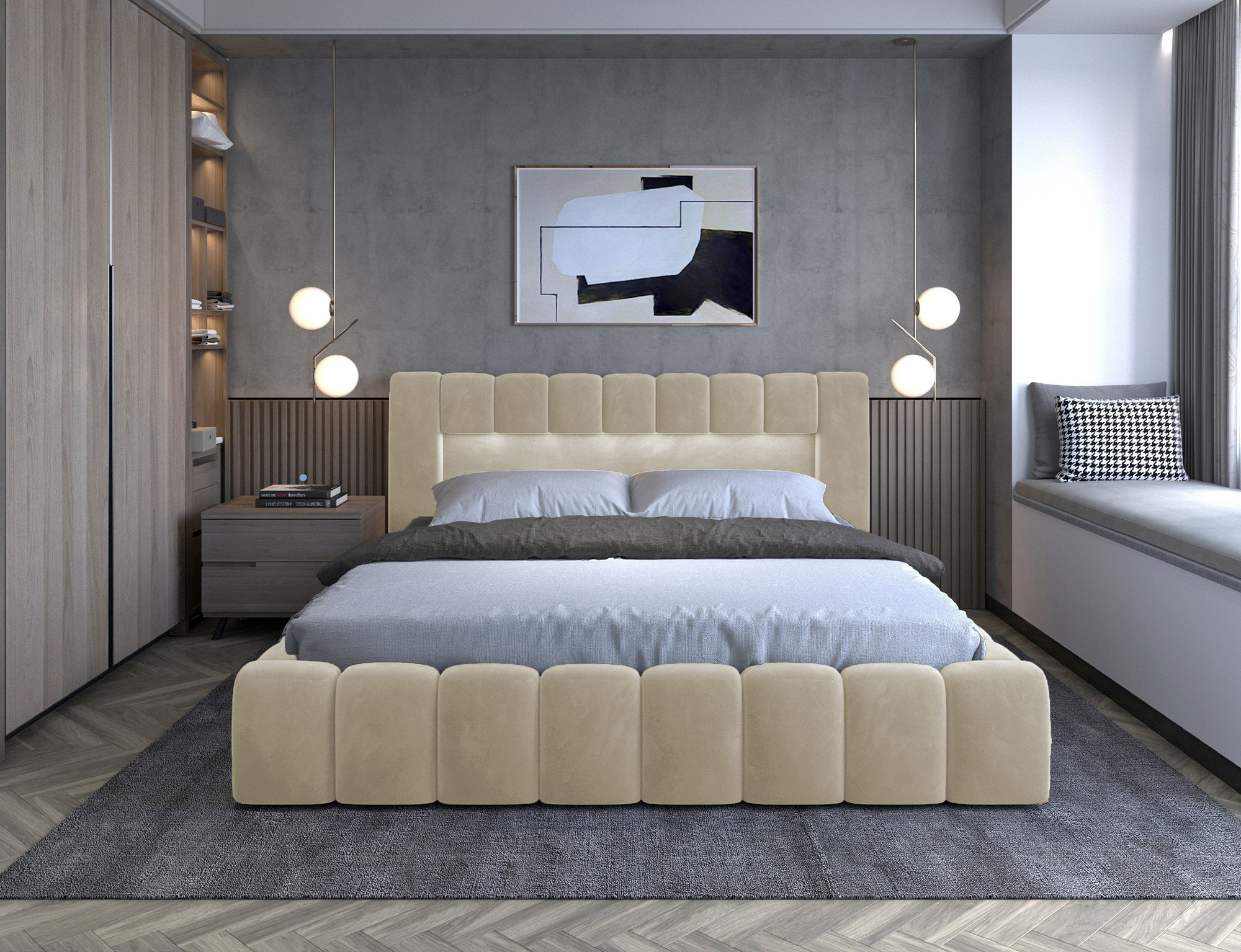 Lamica je velmi pohodlná, měkká a originální postel v glamour stylu, která zaujme svým neobvyklým tvarem a formou. Tento nábytek se skládá z těla a kovového rámu. Má také dva prostorné kontejnery na ložní prádlo. Rozměry spací plochy - můžete si vybrat ze tří verzí - 140/160/180x200 cm - poskytují dostatečný prostor pro relaxační odpočinek v ložnici různých velikostí, což bude vyhovovat vašim preferencím a možnostem. Naše postel se vyznačuje svým zpracováním, protože vysoké čelo a boky postele jsou vytvořeny s přídavnou pěnou. Estetický zážitek je umocněn podélným, rozsáhlým prošíváním. Široká škála barevných možností usnadňuje sladění postele s celou místností. Další výhodou je opěrka hlavy s LED osvětlením, díky kterému bude odpočinek ještě příjemnější. V tomto případě jde modernost a modernistický vzhled ruku v ruce s elegancí, díky čemuž bude Lamica vždy ideální volbou. Určitě stojí za to mít.