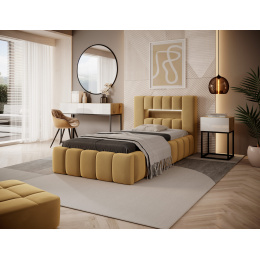 Lamica je velmi pohodlná, měkká a originální postel v glamour stylu, která zaujme svým neobvyklým tvarem a formou. Tento nábytek se skládá z těla a dřevěného rámu. Má také úložný prostor na ložní prádlo. Velikost spací plochy 90x200 cm poskytuje dostatečný prostor pro relaxační odpočinek. Naše postel se vyznačuje svým zpracováním, protože vysoké čelo a boky postele jsou vyrobeny z přídavné pěny. Estetický zážitek je umocněn podélným, rozsáhlým prošíváním. Široká škála barevných možností usnadňuje sladění postele s celou místností. Další výhodou je opěrka hlavy s LED osvětlením, díky kterému bude odpočinek ještě příjemnější. V tomto případě jde modernost a modernistický vzhled ruku v ruce s elegancí, díky čemuž bude Lamica vždy ideální volbou. Určitě stojí za to mít.