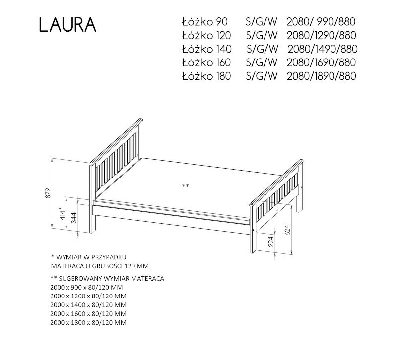 Postel "LAURA" - Barva korpusu: borovice na bílé