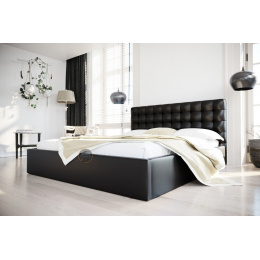 Postel LOFT - 140x200, Dřevěná, černá eko kůže