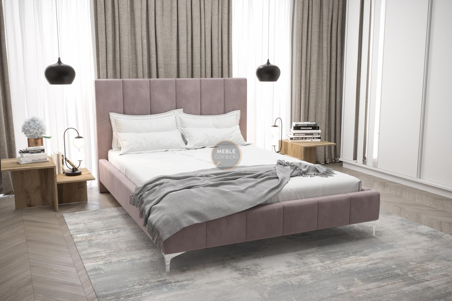 Postel Luna je ideálním modelem pro fanoušky stylu glamour. Celkový dojem doplňuje ozdobné prošívané čelo postele. Stojí za to věnovat pozornost detailům v podobě vysokých kovových nožek, které dodávají styl a lehkost.