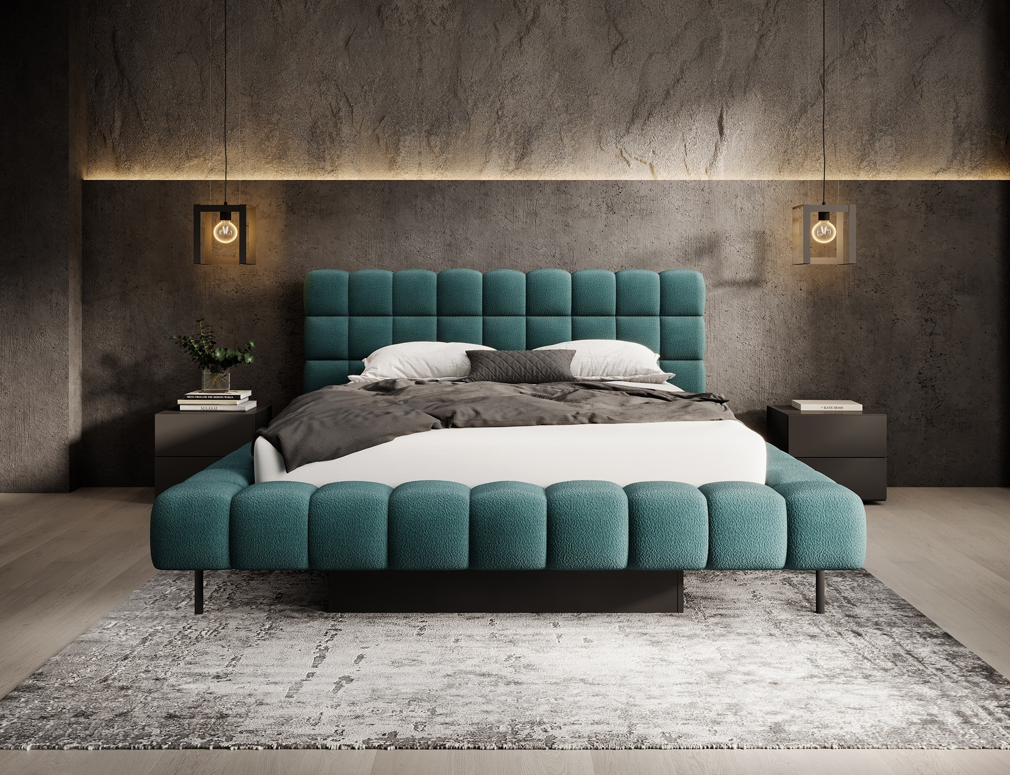 Postel Magentta kombinuje moderní design, funkčnost a výjimečné pohodlí. Jeho čalouněné opěradlo dodává nádech elegance a útulnosti, což z něj činí dokonalý středobod každé ložnice. Robustní rám a čelo postele jsou vyplněny vysoce kvalitní pěnou T2130, která poskytuje vynikající oporu a pohodlí, ať už spíte nebo odpočíváte. Dostupné ve třech velikostech: 140 cm, 160 cm, 180 cm, hodí se do různých prostorů a splňuje osobní preference.Kovový rám obsahuje 36 lamel, které rovnoměrně rozkládají váhu matrace, čímž zvyšují její odolnost a poskytují vynikající oporu. Černá kovová noha zajišťuje stabilní základnu a zároveň zdůrazňuje elegantní, minimalistický design. Praktický úložný prostor pro ložní prádlo nabízí efektivní řešení pro organizaci přikrývek, polštářů a dalších lůžkovin, čímž optimalizuje prostor ve vaší ložnici. Postel Magentta je ideální volbou pro ty, kteří si cení moderní estetiky, pohodlí a praktičnosti.