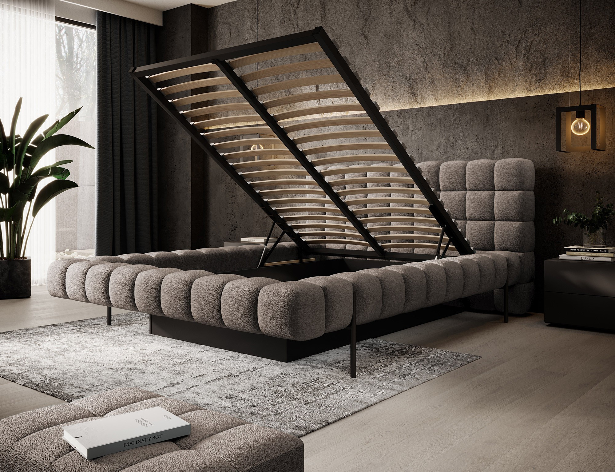 Postel Magentta + kovový rám / plynový zvedák / úložný box na lůžkoviny 140x200 Amore 20 1
