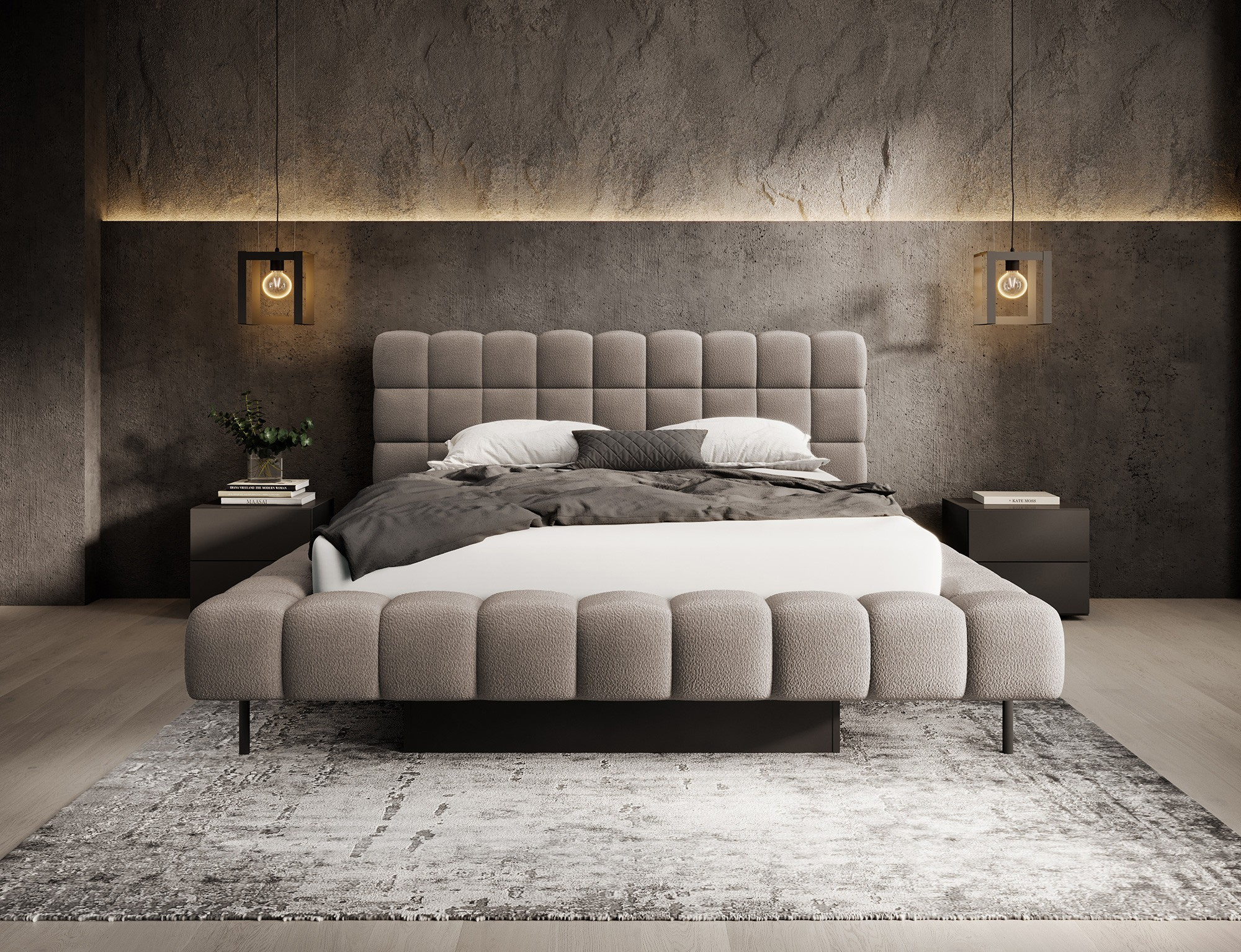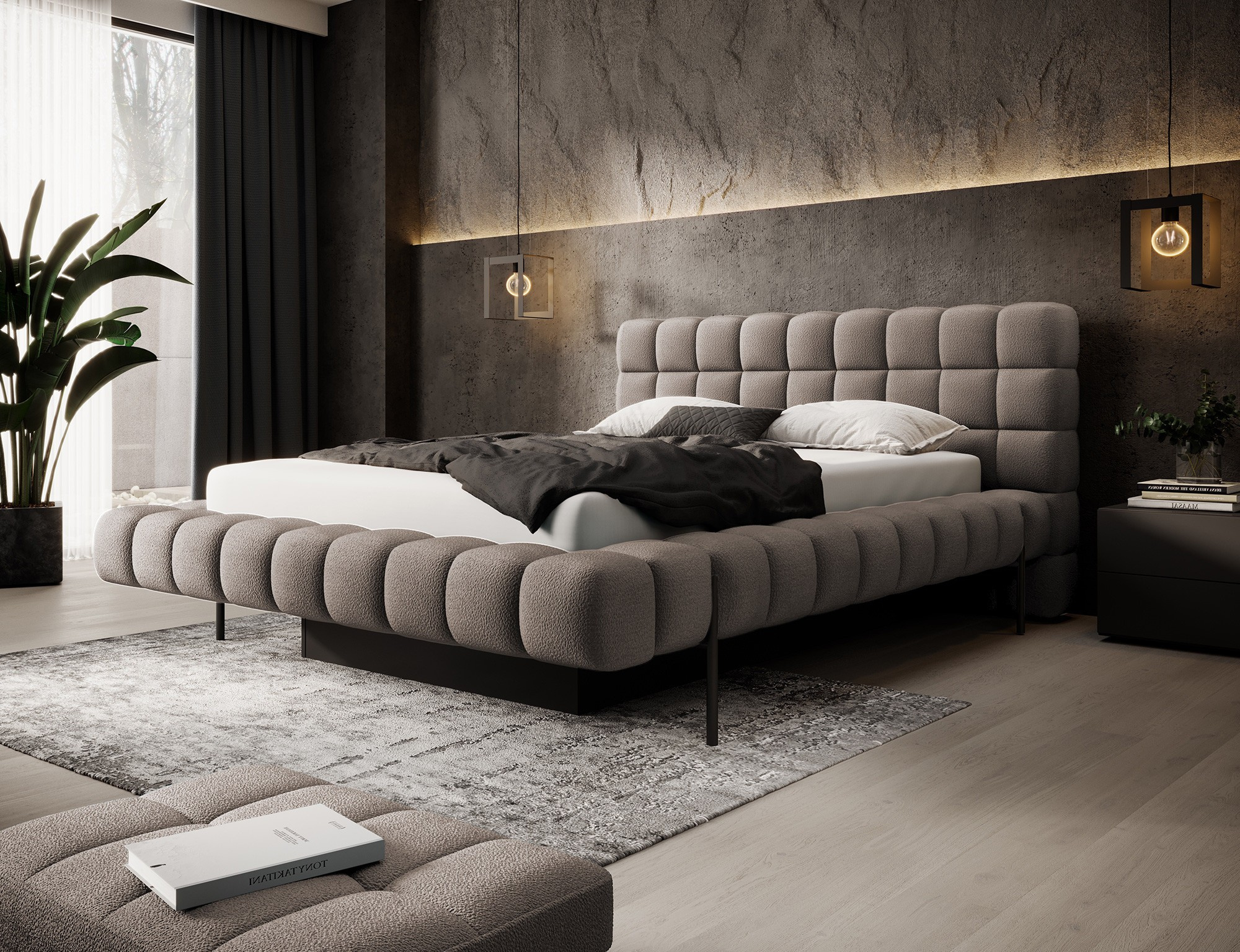 Postel Magentta kombinuje moderní design, funkčnost a výjimečné pohodlí. Jeho čalouněné opěradlo dodává nádech elegance a útulnosti, což z něj činí dokonalý středobod každé ložnice. Robustní rám a čelo postele jsou vyplněny vysoce kvalitní pěnou T2130, která poskytuje vynikající oporu a pohodlí, ať už spíte nebo odpočíváte. Dostupné ve třech velikostech: 140 cm, 160 cm, 180 cm, hodí se do různých prostorů a splňuje osobní preference.Kovový rám obsahuje 36 lamel, které rovnoměrně rozkládají váhu matrace, čímž zvyšují její odolnost a poskytují vynikající oporu. Černá kovová noha zajišťuje stabilní základnu a zároveň zdůrazňuje elegantní, minimalistický design. Praktický úložný prostor pro ložní prádlo nabízí efektivní řešení pro organizaci přikrývek, polštářů a dalších lůžkovin, čímž optimalizuje prostor ve vaší ložnici. Postel Magentta je ideální volbou pro ty, kteří si cení moderní estetiky, pohodlí a praktičnosti.