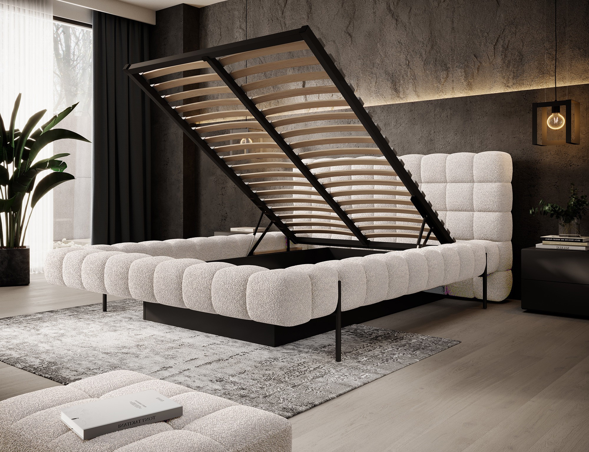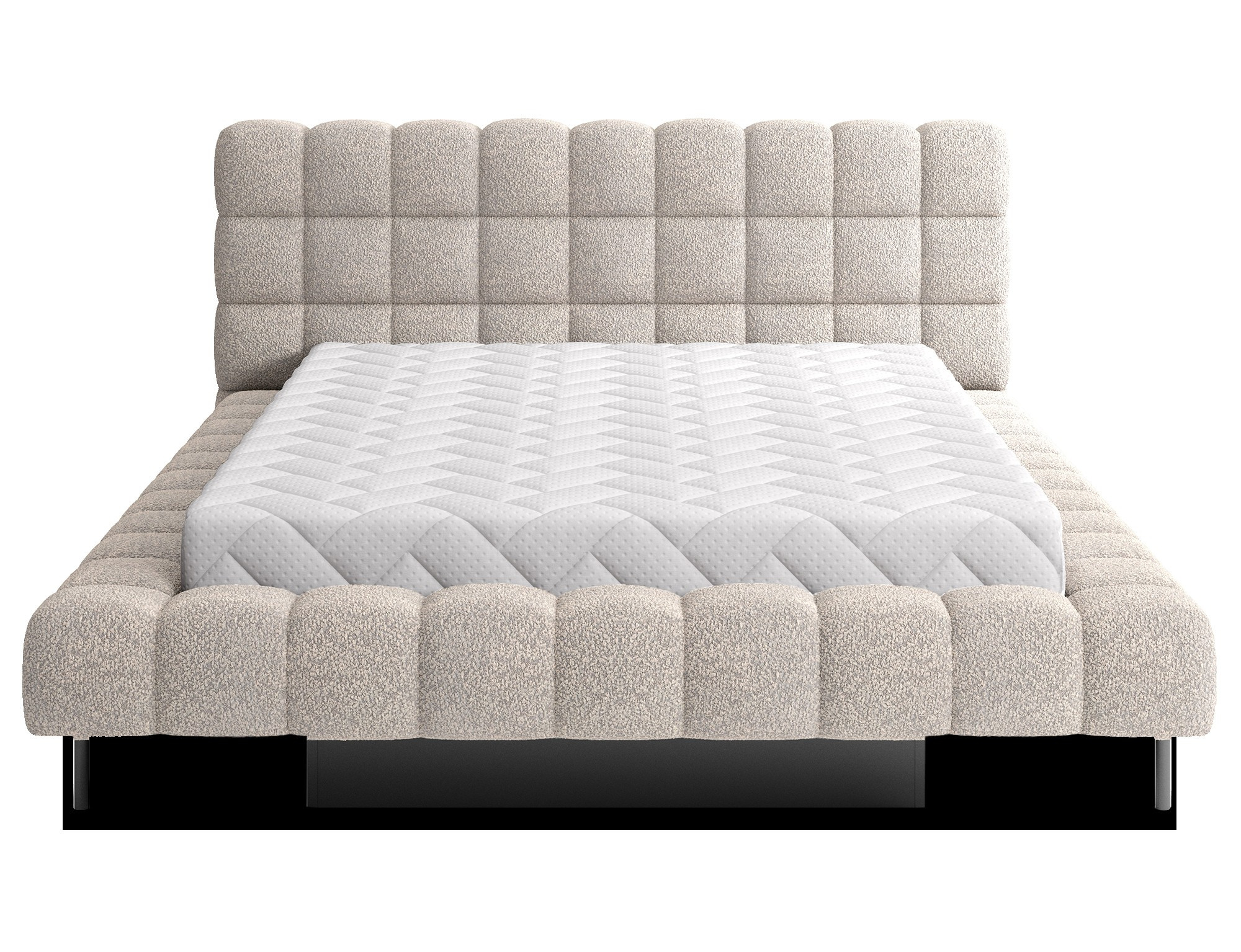 Postel Magentta kombinuje moderní design, funkčnost a výjimečné pohodlí. Jeho čalouněné opěradlo dodává nádech elegance a útulnosti, což z něj činí dokonalý středobod každé ložnice. Robustní rám a čelo postele jsou vyplněny vysoce kvalitní pěnou T2130, která poskytuje vynikající oporu a pohodlí, ať už spíte nebo odpočíváte. Dostupné ve třech velikostech: 140 cm, 160 cm, 180 cm, hodí se do různých prostorů a splňuje osobní preference.Kovový rám obsahuje 36 lamel, které rovnoměrně rozkládají váhu matrace, čímž zvyšují její odolnost a poskytují vynikající oporu. Černá kovová noha zajišťuje stabilní základnu a zároveň zdůrazňuje elegantní, minimalistický design. Praktický úložný prostor pro ložní prádlo nabízí efektivní řešení pro organizaci přikrývek, polštářů a dalších lůžkovin, čímž optimalizuje prostor ve vaší ložnici. Postel Magentta je ideální volbou pro ty, kteří si cení moderní estetiky, pohodlí a praktičnosti.