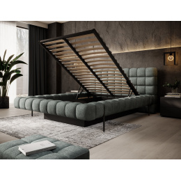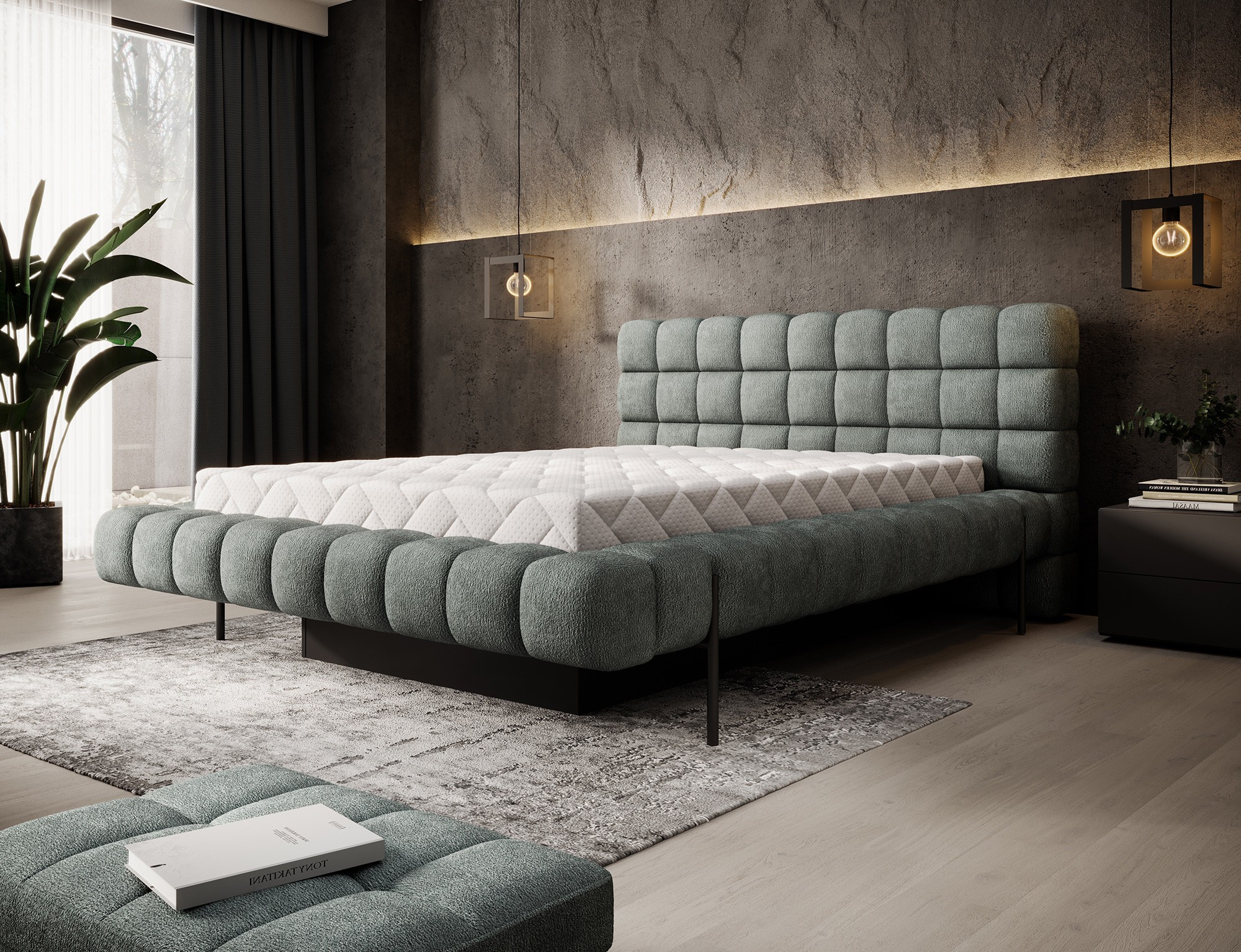 Postel Magentta kombinuje moderní design, funkčnost a výjimečné pohodlí. Jeho čalouněné opěradlo dodává nádech elegance a útulnosti, což z něj činí dokonalý středobod každé ložnice. Robustní rám a čelo postele jsou vyplněny vysoce kvalitní pěnou T2130, která poskytuje vynikající oporu a pohodlí, ať už spíte nebo odpočíváte. Dostupné ve třech velikostech: 140 cm, 160 cm, 180 cm, hodí se do různých prostorů a splňuje osobní preference.Kovový rám obsahuje 36 lamel, které rovnoměrně rozkládají váhu matrace, čímž zvyšují její odolnost a poskytují vynikající oporu. Černá kovová noha zajišťuje stabilní základnu a zároveň zdůrazňuje elegantní, minimalistický design. Praktický úložný prostor pro ložní prádlo nabízí efektivní řešení pro organizaci přikrývek, polštářů a dalších lůžkovin, čímž optimalizuje prostor ve vaší ložnici. Postel Magentta je ideální volbou pro ty, kteří si cení moderní estetiky, pohodlí a praktičnosti.