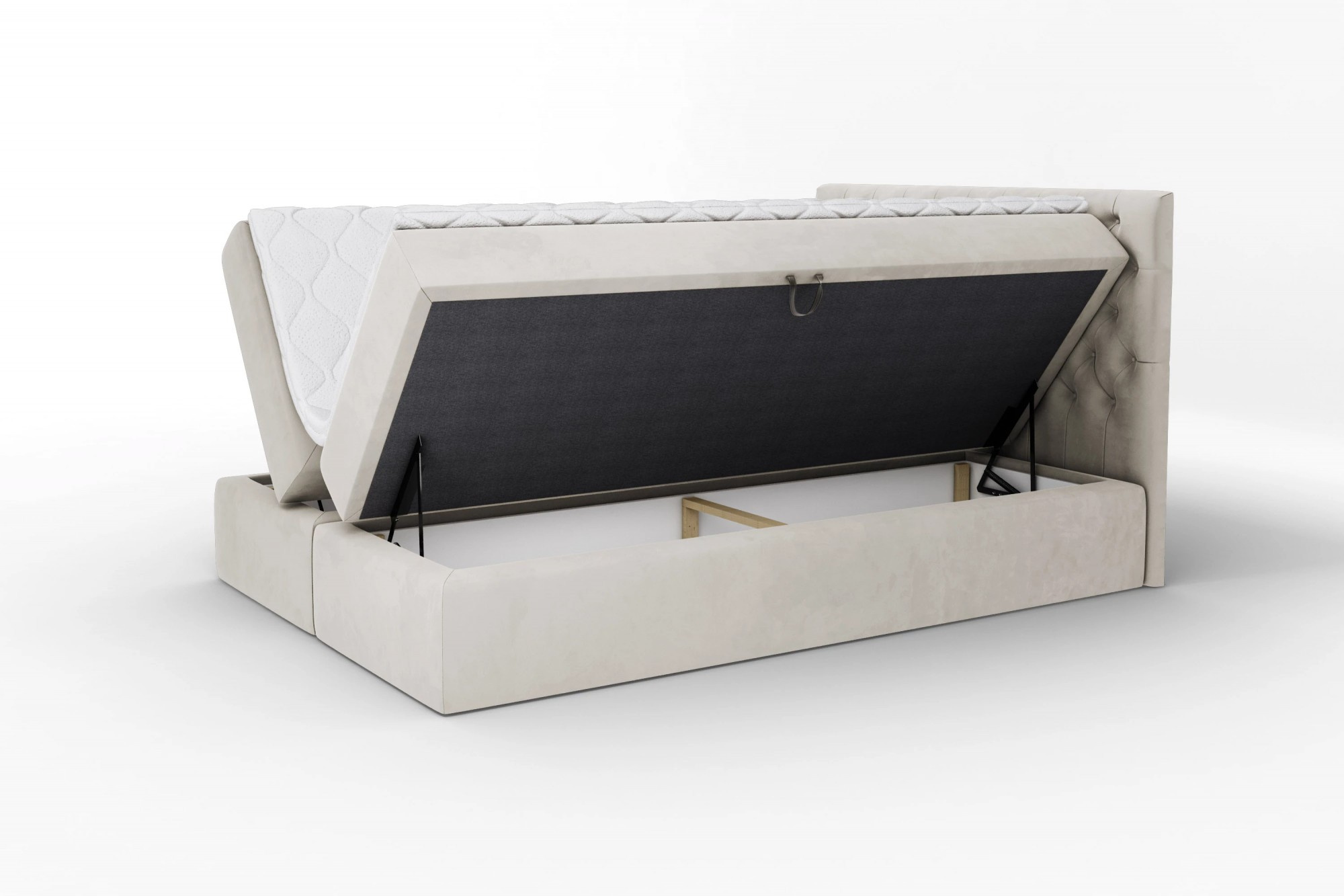 Velurová kontinentální postel 140 × 200 — MARGO Margo je elegantní kontinentální postel, která promění vaši ložnici. Čalouněné, prošívané čelo postele mu dodává sofistikovaný charakter, zatímco praktické úložné prostory a pohodlná matrace zajišťují každodenní komfort. Srdcem soupravy je matrace střední tvrdosti založená na bonellových pružinách a vrstvě pěny – zaručuje správnou podporu těla a pohodlný spánek. Pro náročnější je k dispozici verze s taštičkovými pružinami, které pracují nezávisle a snižují přenos vibrací. Volitelný topper (vrchní matrace) dodatečně zvyšuje pocit měkkosti a přizpůsobení. Dvě prostorné úložné prostory na ložní prádlo s automaty usnadňují udržování pořádku a zajišťují snadný přístup k uloženým věcem. Široká škála čalounických látek umožňuje přizpůsobit postel interiéru. Vlastnosti produktu dva velké úložné prostory pod matrací – s automatickým mechanismem pro snadné otevírání, standardní matrace: vysoce elastická pěna + bonellové pružiny, za příplatek kapsové pružiny místo bonellových, čalouněné, prošívané čelo postele – elegantní prvek v ložnici, rám z masivního dřeva a dřevotřísky – stabilita a trvanlivost, zadní část čela postele v černém wigofilu – estetická technická tkanina, černé nožky z plastu – bezpečné pro podlahy, snadná montáž – kovové spoje umožňují rychlé a intuitivní sestavení postele. Rozměry postele plocha na spaní: 140 × 200 cm, šířka: 142 cm, hloubka: 208 cm, výška čela: 105 cm, výška bez topperu: 45 cm, výška s topperem: 50 cm, tloušťka čela: 7 cm, *Všechny rozměry jsou uváděny s tolerancí +/- 3 cm