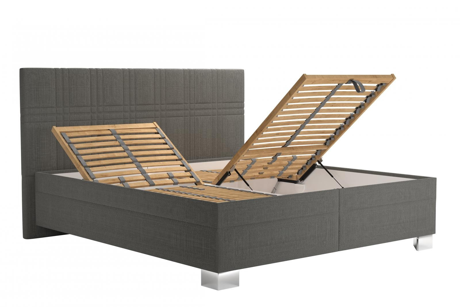 Úložný prostor lůžka se otevírá za pomoci plynových pístů od nohou postele.