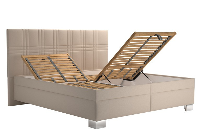 Postel Michaela se pyšní pečlivým zpracováním s osobitým designem. Tato postel Vám poskytne příjemnou oázu pro odpočinek a ráno budete vstávat příjemně odpočinutí a svěží. V ceně postele jsou lamelové rošty s písty. Rošty mají 28 lamel s možností nastavení tuhosti, mechanickým polohováním hlavy a nohou a popruhem proti přetížení. Postel je také vybavena velkým úložným prostorem, který je přístupný od nohou. Postel je dodávána bez matrací. Přehoz-denní deka a polštářky jsou v ceně postele.