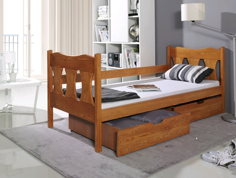 Součástí postele je rošt. Cena je uvedena za postel v provedení přírodním. Za barevné provedení je příplatek ve výši 330,- Kč. Postel lze vyrobit na zakázku ve Vámi požadovaném rozměru za příplatek, který Vám sdělíme dle Vašeho požadavku.
