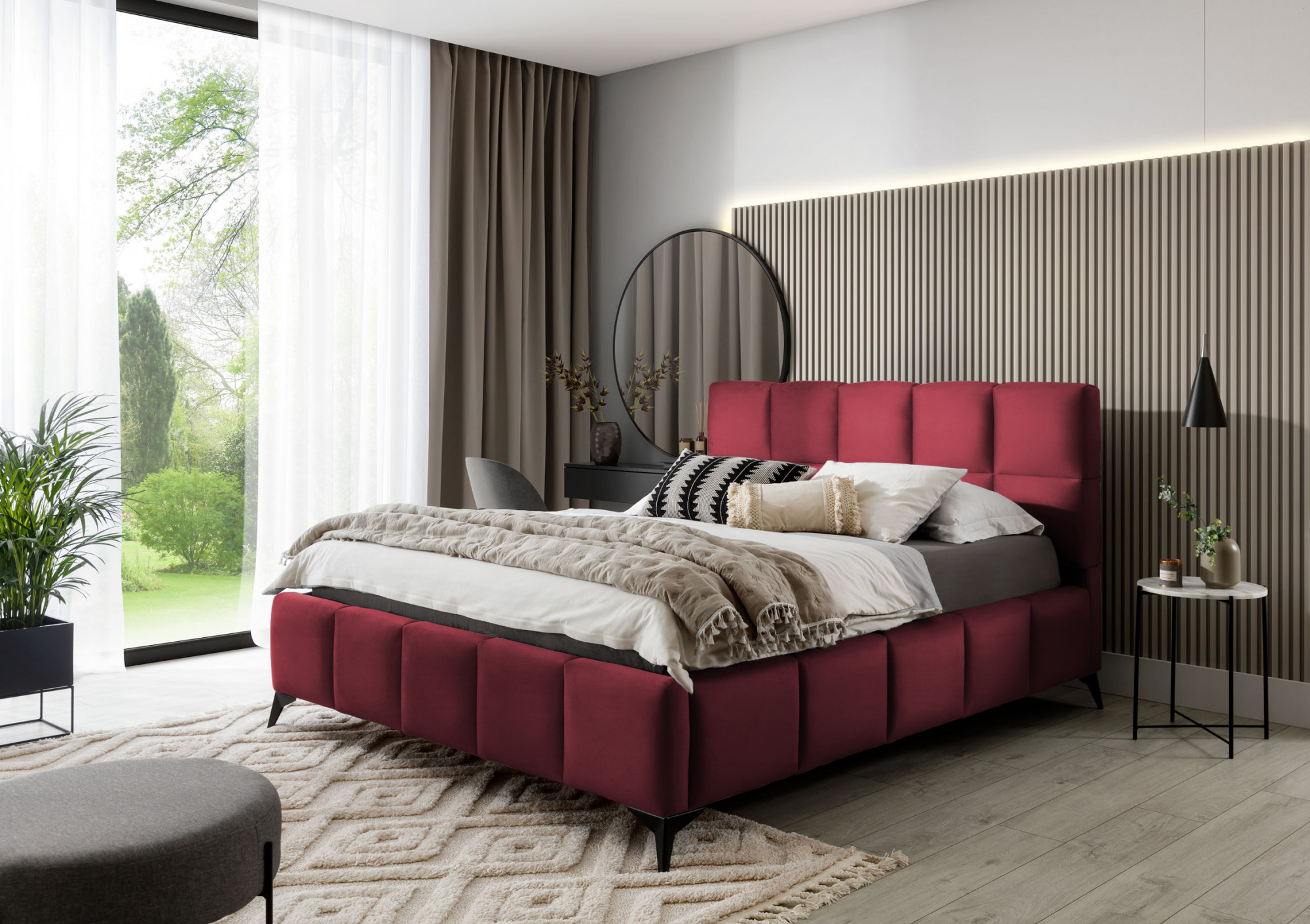 Postel Mist je kombinací moderního designu a glamour stylu, která přináší nádech elegance do každé ložnice. Opěrka hlavy má měkkou pěnovou výplň potaženou vysoce kvalitním čalouněním. Prošívání, které zdobí postel Mist, přidává styl a charakter a přináší nádech modernosti.Nábytek je k dispozici ve třech šířkách spací plochy: 140, 160, 180 x 200 centimetrů. To usnadňuje přizpůsobení postele podmínkám v bytě. Černé ocelové nohy s délkou až 13.5 centimetrů vytváří dojem, že postel se vznáší nad zemí, což dále opticky zvětšuje místnost, ve které bude postel Mist umístěna. Kromě toho je nábytek také vybaven úložným prostorem na lůžkoviny, což je velmi dobré řešení pro malé prostory a umožňuje udržovat ložnici uklizenou.