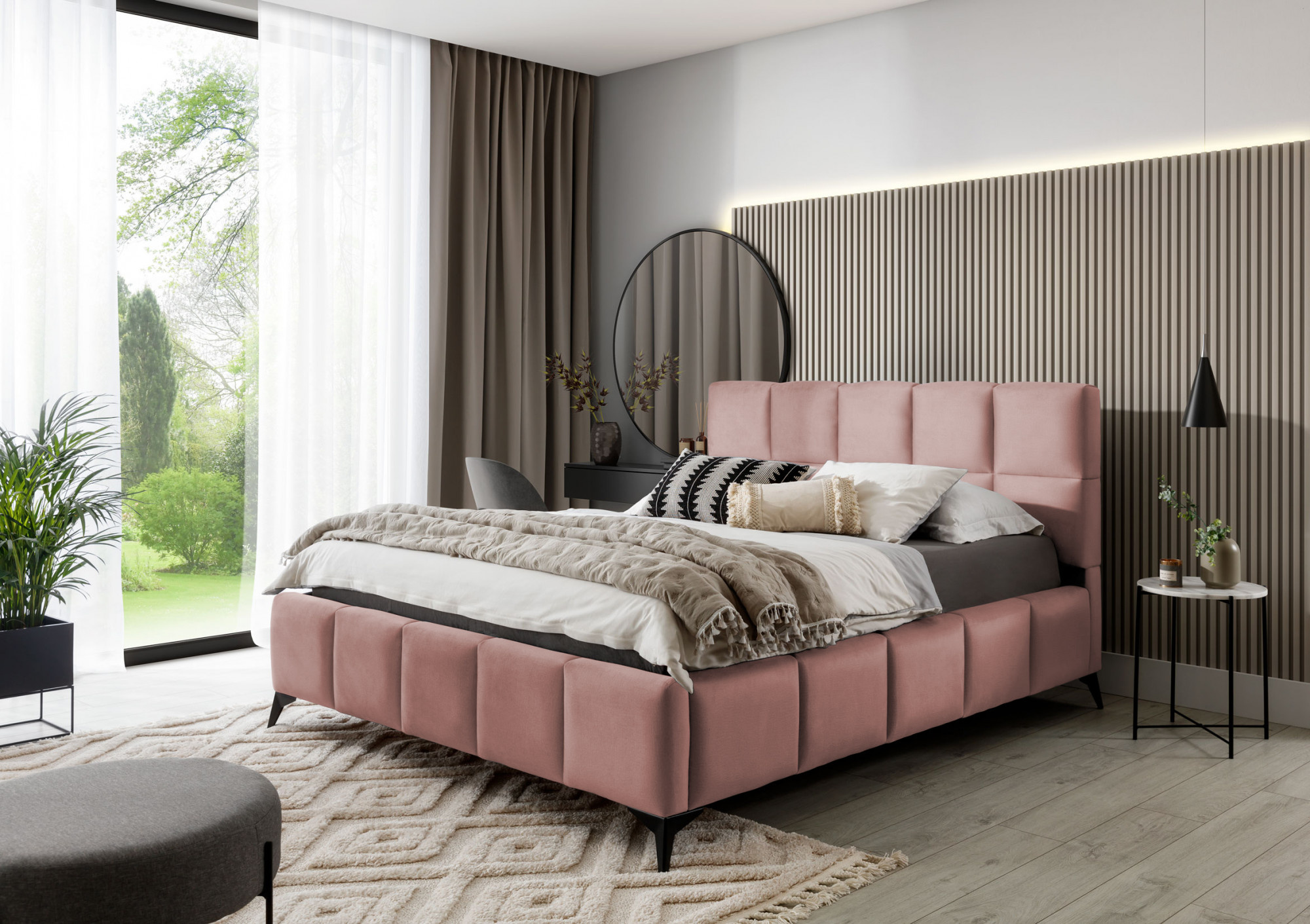 Postel Mist je kombinací moderního designu a glamour stylu, která přináší nádech elegance do každé ložnice. Opěrka hlavy má měkkou pěnovou výplň potaženou vysoce kvalitním čalouněním. Prošívání, které zdobí postel Mist, přidává styl a charakter a přináší nádech modernosti.Nábytek je k dispozici ve třech šířkách spací plochy: 140, 160, 180 x 200 centimetrů. To usnadňuje přizpůsobení postele podmínkám v bytě. Černé ocelové nohy s délkou až 13.5 centimetrů vytváří dojem, že postel se vznáší nad zemí, což dále opticky zvětšuje místnost, ve které bude postel Mist umístěna. Kromě toho je nábytek také vybaven úložným prostorem na lůžkoviny, což je velmi dobré řešení pro malé prostory a umožňuje udržovat ložnici uklizenou.
