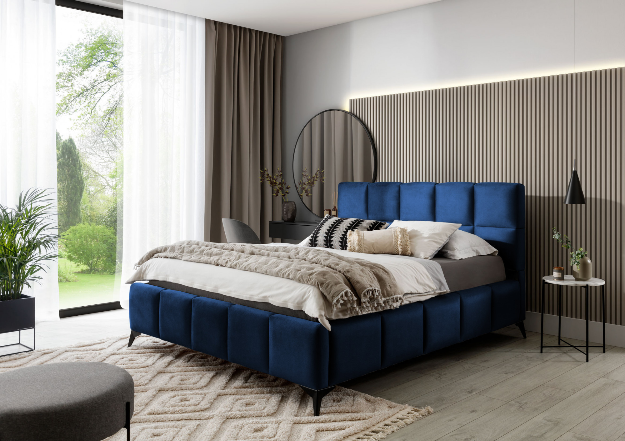 Postel Mist je kombinací moderního designu a glamour stylu, která přináší nádech elegance do každé ložnice. Opěrka hlavy má měkkou pěnovou výplň potaženou vysoce kvalitním čalouněním. Prošívání, které zdobí postel Mist, přidává styl a charakter a přináší nádech modernosti.Nábytek je k dispozici ve třech šířkách spací plochy: 140, 160, 180 x 200 centimetrů. To usnadňuje přizpůsobení postele podmínkám v bytě. Černé ocelové nohy s délkou až 13.5 centimetrů vytváří dojem, že postel se vznáší nad zemí, což dále opticky zvětšuje místnost, ve které bude postel Mist umístěna. Kromě toho je nábytek také vybaven úložným prostorem na lůžkoviny, což je velmi dobré řešení pro malé prostory a umožňuje udržovat ložnici uklizenou.