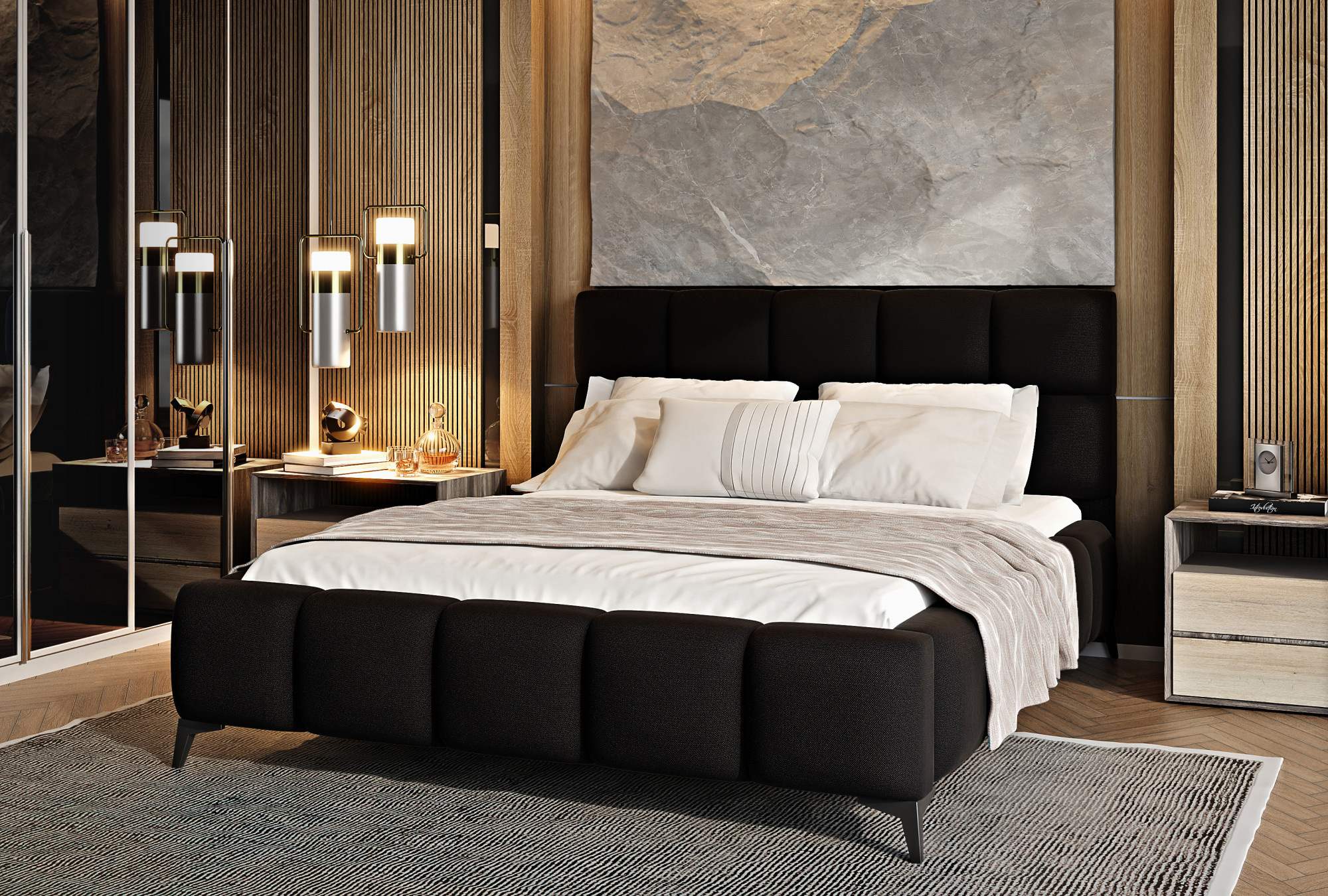 Postel Mist je kombinací moderního designu a glamour stylu, která přináší nádech elegance do každé ložnice. Opěrka hlavy má měkkou pěnovou výplň potaženou vysoce kvalitním čalouněním. Prošívání, které zdobí postel Mist, přidává styl a charakter a přináší nádech modernosti.Nábytek je k dispozici ve třech šířkách spací plochy: 140, 160, 180 x 200 centimetrů. To usnadňuje přizpůsobení postele podmínkám v bytě. Černé ocelové nohy s délkou až 13.5 centimetrů vytváří dojem, že postel se vznáší nad zemí, což dále opticky zvětšuje místnost, ve které bude postel Mist umístěna. Kromě toho je nábytek také vybaven úložným prostorem na lůžkoviny, což je velmi dobré řešení pro malé prostory a umožňuje udržovat ložnici uklizenou.