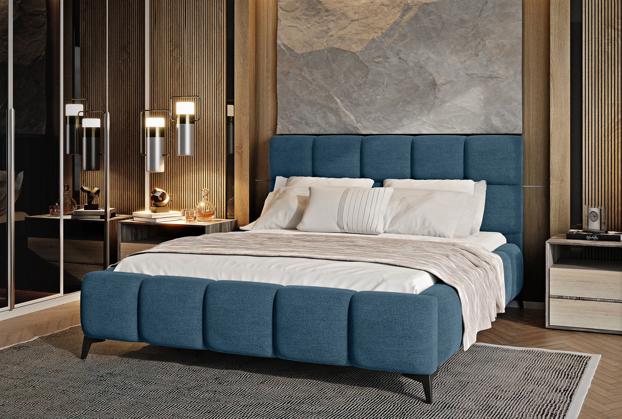 Postel Mist je kombinací moderního designu a glamour stylu, která přináší nádech elegance do každé ložnice. Opěrka hlavy má měkkou pěnovou výplň potaženou vysoce kvalitním čalouněním. Prošívání, které zdobí postel Mist, přidává styl a charakter a přináší nádech modernosti.Nábytek je k dispozici ve třech šířkách spací plochy: 140, 160, 180 x 200 centimetrů. To usnadňuje přizpůsobení postele podmínkám v bytě. Černé ocelové nohy s délkou až 13.5 centimetrů vytváří dojem, že postel se vznáší nad zemí, což dále opticky zvětšuje místnost, ve které bude postel Mist umístěna. Kromě toho je nábytek také vybaven úložným prostorem na lůžkoviny, což je velmi dobré řešení pro malé prostory a umožňuje udržovat ložnici uklizenou.