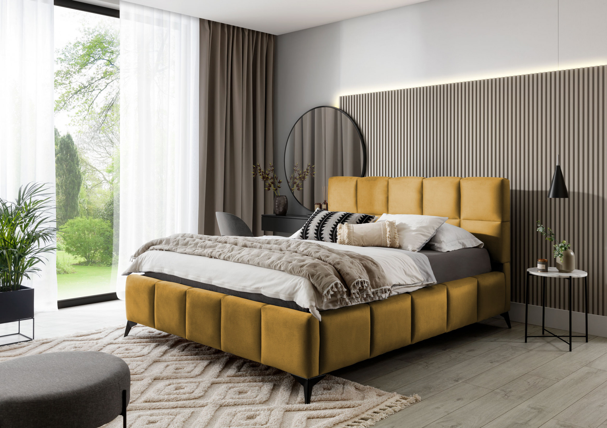 Postel Mist je kombinací moderního designu a glamour stylu, která přináší nádech elegance do každé ložnice. Opěrka hlavy má měkkou pěnovou výplň potaženou vysoce kvalitním čalouněním. Prošívání, které zdobí postel Mist, přidává styl a charakter a přináší nádech modernosti.Nábytek je k dispozici ve třech šířkách spací plochy: 140, 160, 180 x 200 centimetrů. To usnadňuje přizpůsobení postele podmínkám v bytě. Černé ocelové nohy s délkou až 13.5 centimetrů vytváří dojem, že postel se vznáší nad zemí, což dále opticky zvětšuje místnost, ve které bude postel Mist umístěna. Kromě toho je nábytek také vybaven úložným prostorem na lůžkoviny, což je velmi dobré řešení pro malé prostory a umožňuje udržovat ložnici uklizenou.