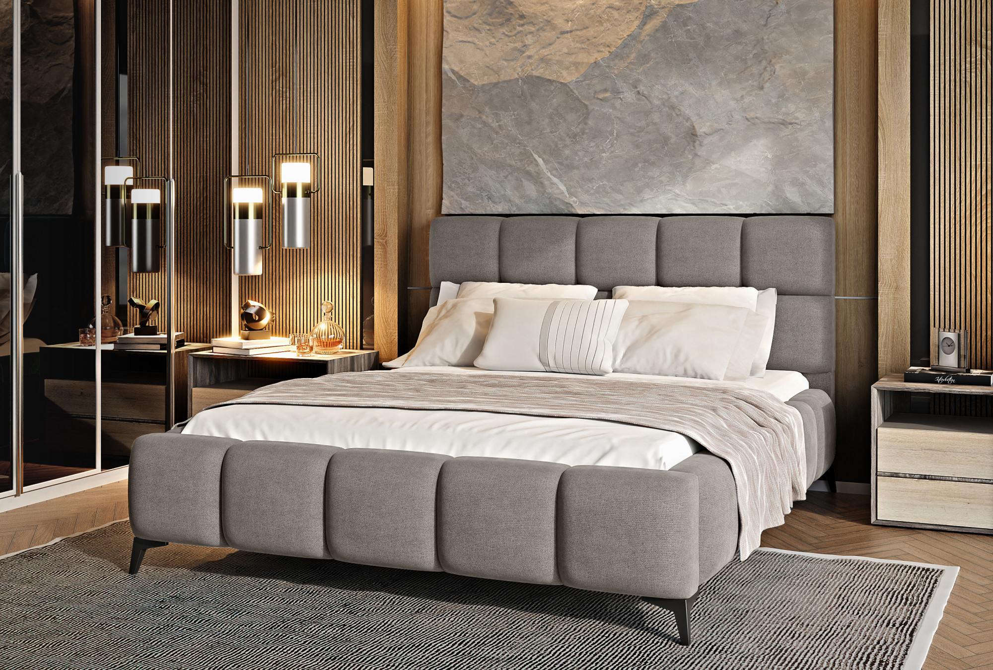 Postel Mist je kombinací moderního designu a glamour stylu, která přináší nádech elegance do každé ložnice. Opěrka hlavy má měkkou pěnovou výplň potaženou vysoce kvalitním čalouněním. Prošívání, které zdobí postel Mist, přidává styl a charakter a přináší nádech modernosti.Nábytek je k dispozici ve třech šířkách spací plochy: 140, 160, 180 x 200 centimetrů. To usnadňuje přizpůsobení postele podmínkám v bytě. Černé ocelové nohy s délkou až 13.5 centimetrů vytváří dojem, že postel se vznáší nad zemí, což dále opticky zvětšuje místnost, ve které bude postel Mist umístěna. Kromě toho je nábytek také vybaven úložným prostorem na lůžkoviny, což je velmi dobré řešení pro malé prostory a umožňuje udržovat ložnici uklizenou.