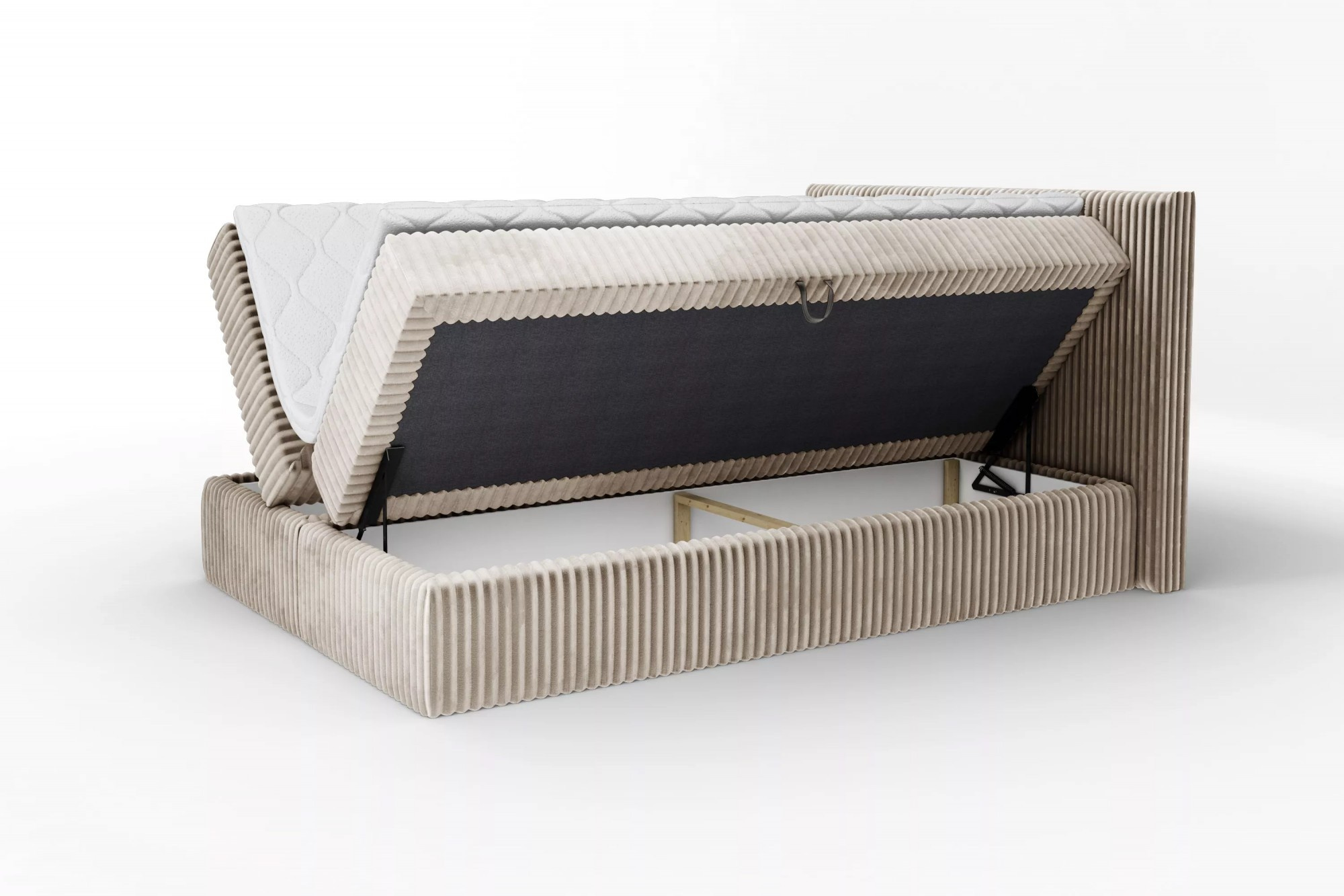 Komfortní kontinentální postel Nela 180 × 200 Hledáte postel, která vám poskytne nejen pohodlný spánek, ale také se stane stylovou ozdobou ložnice? Kontinentální postel Nela je ideálním řešením pro osoby, které si cení praktických řešení a elegantního designu. Kontinentální postel Nela není jen místem na spaní, ale skutečnou oázou relaxace a odpočinku. Vybavené vysoce kvalitní matrací o tloušťce 20 cm, která kombinuje pružnost pěny a elasticitu bonellových pružin, poskytuje optimální podporu těla a zaručuje pohodlný spánek. Pro nejnáročnější uživatele nabízíme možnost výměny bonellových pružin za kapsové pružiny pocket. Chceš ještě více zvýšit pohodlí spánku? Rozhodni se pro volitelný topper, tedy 5centimetrovou vrchní matraci vyrobenou z pěny. To ideální řešení pro osoby, které chtějí vyrovnat povrch na spaní a maximalizovat komfort spánku. Naše postel Nela se stará nejen o vaše pohodlí, ale také o pořádek v ložnici. Dvě prostorné úložné boxy na ložní prádlo, otevírané do stran, poskytují spoustu místa pro uložení přikrývek, dek a polštářů. To efektivní řešení, které umožňuje ušetřit cenný prostor v ložnici. Kontinentální postel je vyrobena z atraktivní látky Tilia, která se vyznačuje silným, širokým a na dotek měkkým manšestrem, a je dostupná v různých barevných variantách. To není jen praktický prvek ložnice, ale také stylový doplněk, který se dokonale hodí do různorodých interiérů. Objev, jak kontinentální postel Nela může zvýšit kvalitu tvého spánku, díky čemuž bude každé probuzení plné energie a odpočinku! Vlastnosti produktu: dvě prostorné úložné skříně otevírané pomocí pružinového automatu na pravé a levé straně postele, hlavní matrace vyrobená z vysoce elastické pěny a bonellových pružin ve standardu, za příplatek možnost výměny bonellových pružin za kapsové pružiny, efektní látka Tilia — silný měkký manšestr, rám postele vyrobený z masivního dřeva a dřevotřísky, zadní část čela postele vyrobena z technické tkaniny (černý wigofil), nožky vyrobené z plastu v černé barvě, které zabraňují poškození podlahy, jednoduchá a intuitivní montáž, pro složení postele stačí spojit kovové západky. Rozměry postele plocha na spaní: 180 × 200 cm, šířka: 182 cm, hloubka: 208 cm, výška čela: 105 cm, výška bez topperu: 45 cm, tloušťka čela: 7 cm, *Všechny rozměry jsou uváděny s tolerancí +/- 3 cm