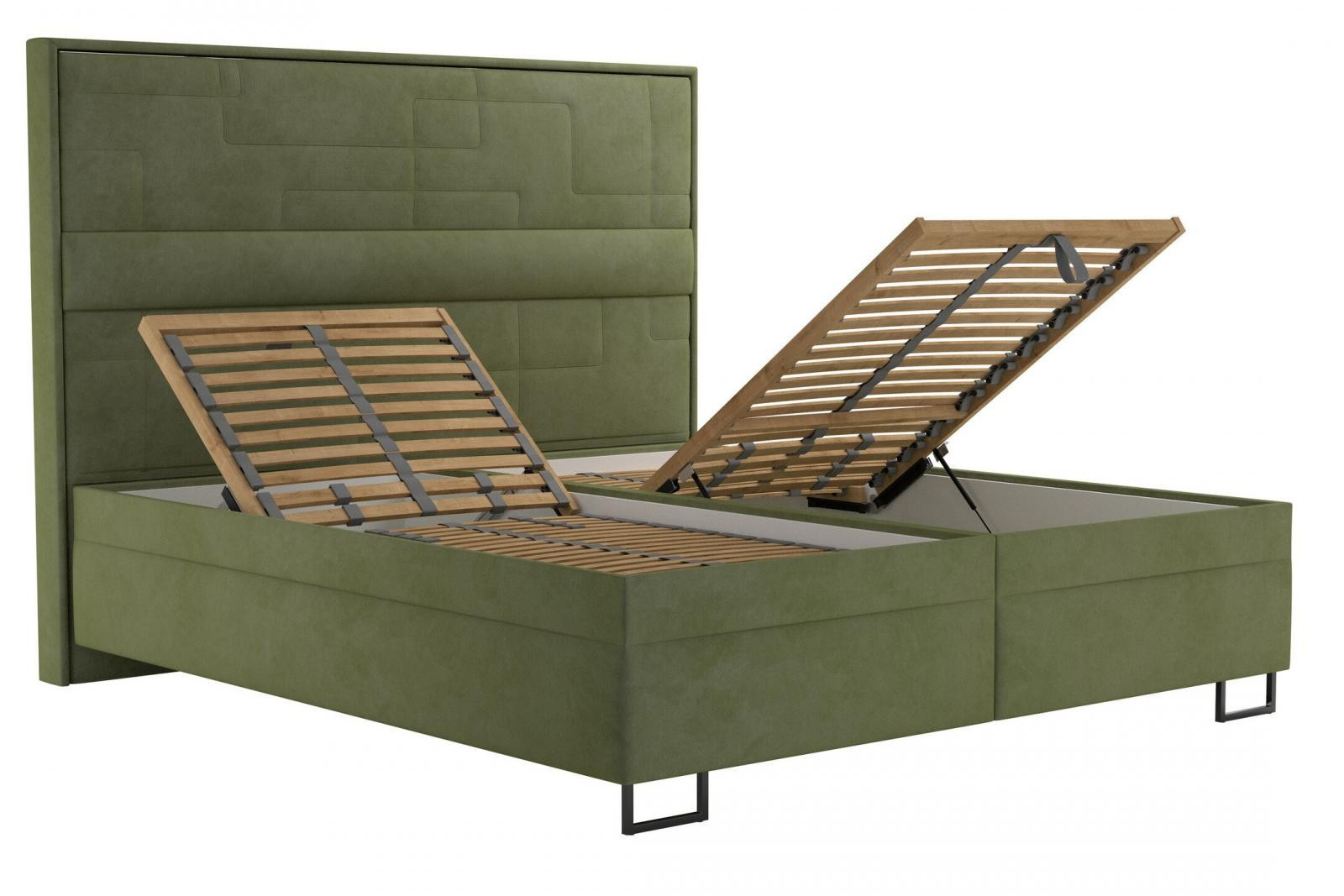 Úložný prostor lůžka se otevírá za pomoci plynových pístů od nohou postele.