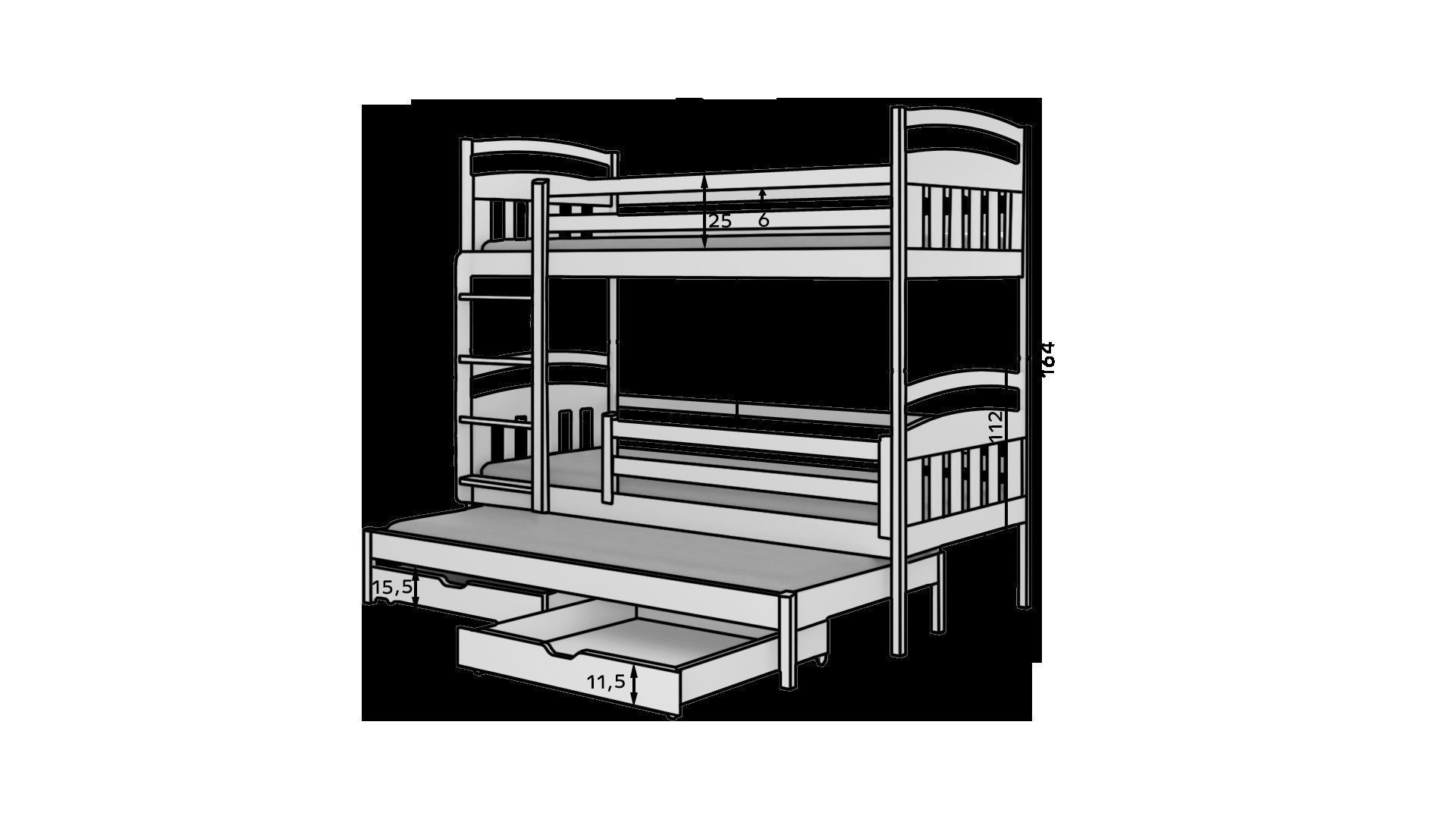 Třílůžková patrová postel ALDI 200x90 Bílá