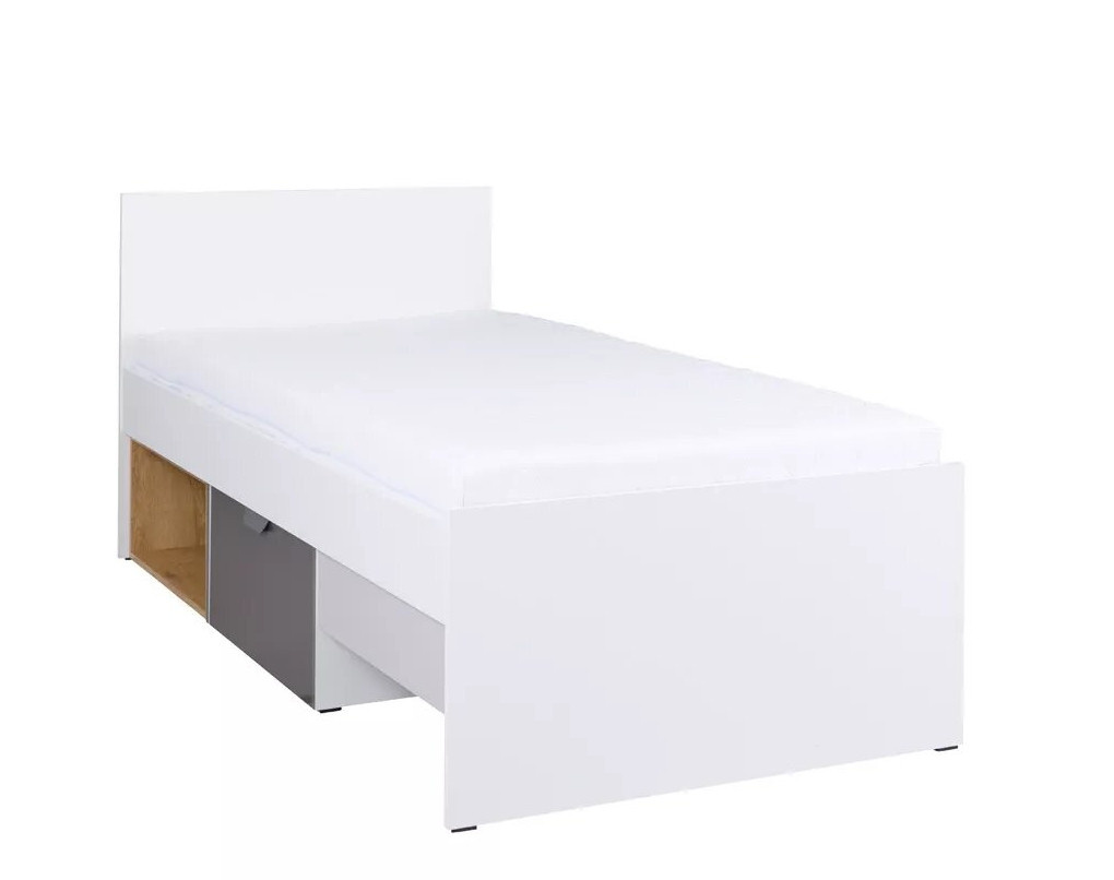 Postel R15 je vyrobena z lamina v krásném dekoru bílá, grafit, šedá a dub Lefkas. Lamino je odolné a jistě oceníte i snadnou údržbu. Postel je možno objednat v levém, nebo pravém provedení. Součátí postele je laťkový rošt a úložný prostor. MATRACE NENÍ V CENĚ POSTELE.
