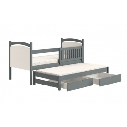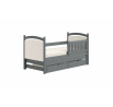 postel přízemní výsuvná s tabulí na suché mazání Amely - Barva grafit, rozměr 80x180 , šířka: 87, výška: 102, hloubka: 187, Rozměr pro matrace: 80x180 , Montáž: . Funkcjonalne łóżeczko piętrowe, wykonane z drewna, z pojemnymi szufladami oraz wezgłowiami w formia tablicy suchościeralnej w kolorze białym.