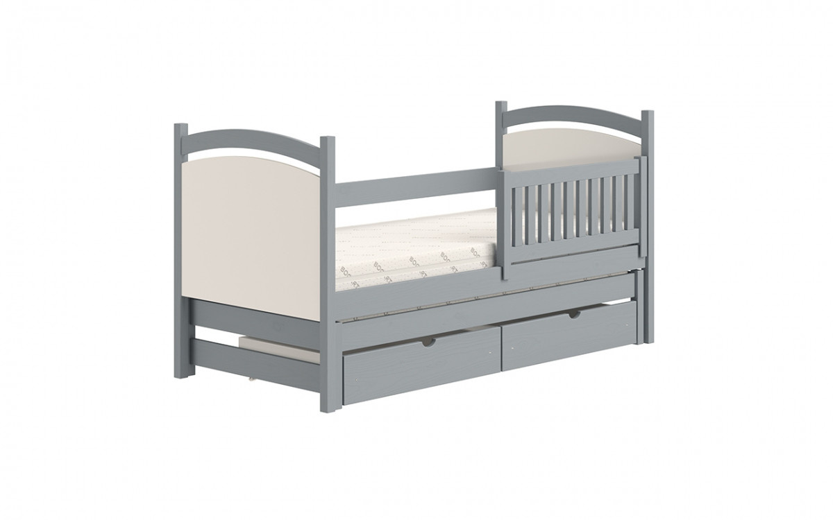 postel přízemní výsuvná s tabulí na suché mazání Amely - Barva šedý, rozměr 80x180, šířka: 87, výška: 102, hloubka: 187, Rozměr pro matrace: 80x180 , Montáž: . Funkcjonalne łóżeczko piętrowe, wykonane z drewna, z pojemnymi szufladami oraz wezgłowiami w formia tablicy suchościeralnej w kolorze białym.