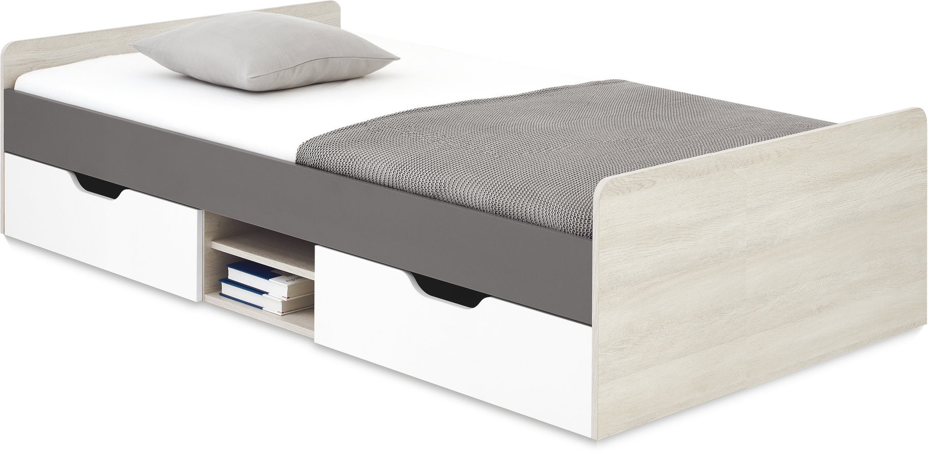 Postel REMO RM16 - 120x200 cm, Dub Wilton bílý/Bílá Lux/Antracit