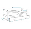 Dětská postel Riky je určena pro ty, kteří pro své dítě hledají funkčnost, moderní design a kvalitu. Postel je vyrobena z borovicového dřeva v kombinaci s MDF deskou (barevné panely na bocích postele). Její stabilní konstrukce, zaoblené hrany a zábrana, která je v ceně postele, zajišťují bezpečnost a pohodlí dítěte. Zábranu si můžete podle potřeby umístit na pravou, nebo levou stranu postele. Součástí postele je také praktický úložný prostor na kolečkách, rošt a pěnová matrace se snímatelným potahem. Tloušťka matrace je 7cm. Plocha pro spaní je 90x200 cm. Postel je dodávána v demontu a součástí je montážní plánek včetně všech potřebných spojovacích materiálů. Vyobrazené dekorace nejsou v ceně. Zobrazení barev na fotografii se může od skutečnosti nepatrně lišit.