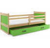 Dětská postel Riky je určena pro ty, kteří pro své dítě hledají funkčnost, moderní design a kvalitu. Postel je vyrobena z borovicového dřeva v kombinaci s MDF deskou (barevné panely na bocích postele). Její stabilní konstrukce, zaoblené hrany a zábrana, která je v ceně postele, zajišťují bezpečnost a pohodlí dítěte. Zábranu si můžete podle potřeby umístit na pravou, nebo levou stranu postele. Součástí postele je také praktický úložný prostor na kolečkách, rošt a pěnová matrace se snímatelným potahem. Tloušťka matrace je 7cm. Plocha pro spaní je 90x200 cm. Postel je dodávána v demontu a součástí je montážní plánek včetně všech potřebných spojovacích materiálů. Vyobrazené dekorace nejsou v ceně. Zobrazení barev na fotografii se může od skutečnosti nepatrně lišit.