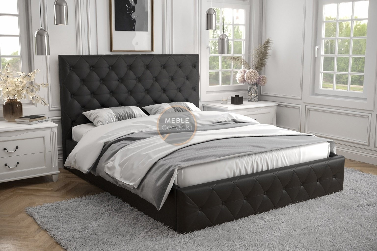 Postel ROMA - 200x200, Kovová na plynových zvedácích, černá eko kůže
