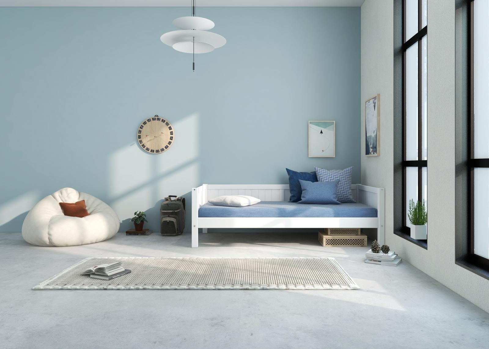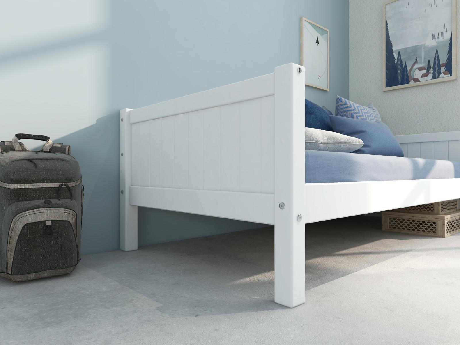 Zboží je dodáváno v demontu BEZ MATRACE. Doporučujeme dokoupit matraci 90 x 200 cm. Součástí je schematický návod na montáž včetně všech spojovacích prvků. Vyobrazené doplňky a dekorace nejsou v ceně.