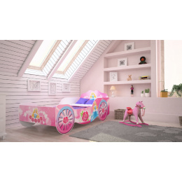Jednolůžková postel z kolekce KARETA je ideální volbou pro malou Princeznu. V procesu výroby byly použity ekologické vodní barvy, které jsou bezpečné a odolné vůči mechanickému poškození. Navíc postel nemá ostré rohy a grafika je chráněna laminátem.