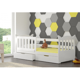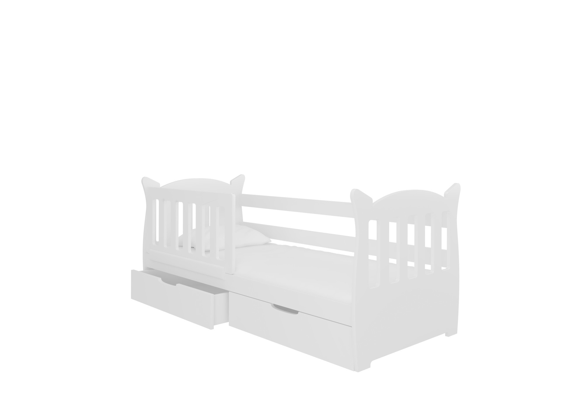 Jednolůžková postel LENA se skvěle hodí do interiéru pokoje chlapce nebo dívky. Model byl doplněn o ochrannou zábranu zajišťující bezpečnost během spánku a prostorné a funkční zásuvky na ložní prádlo. Součástí sady je také odolný rám a pěnová matrace s bavlněným potahem na zip.