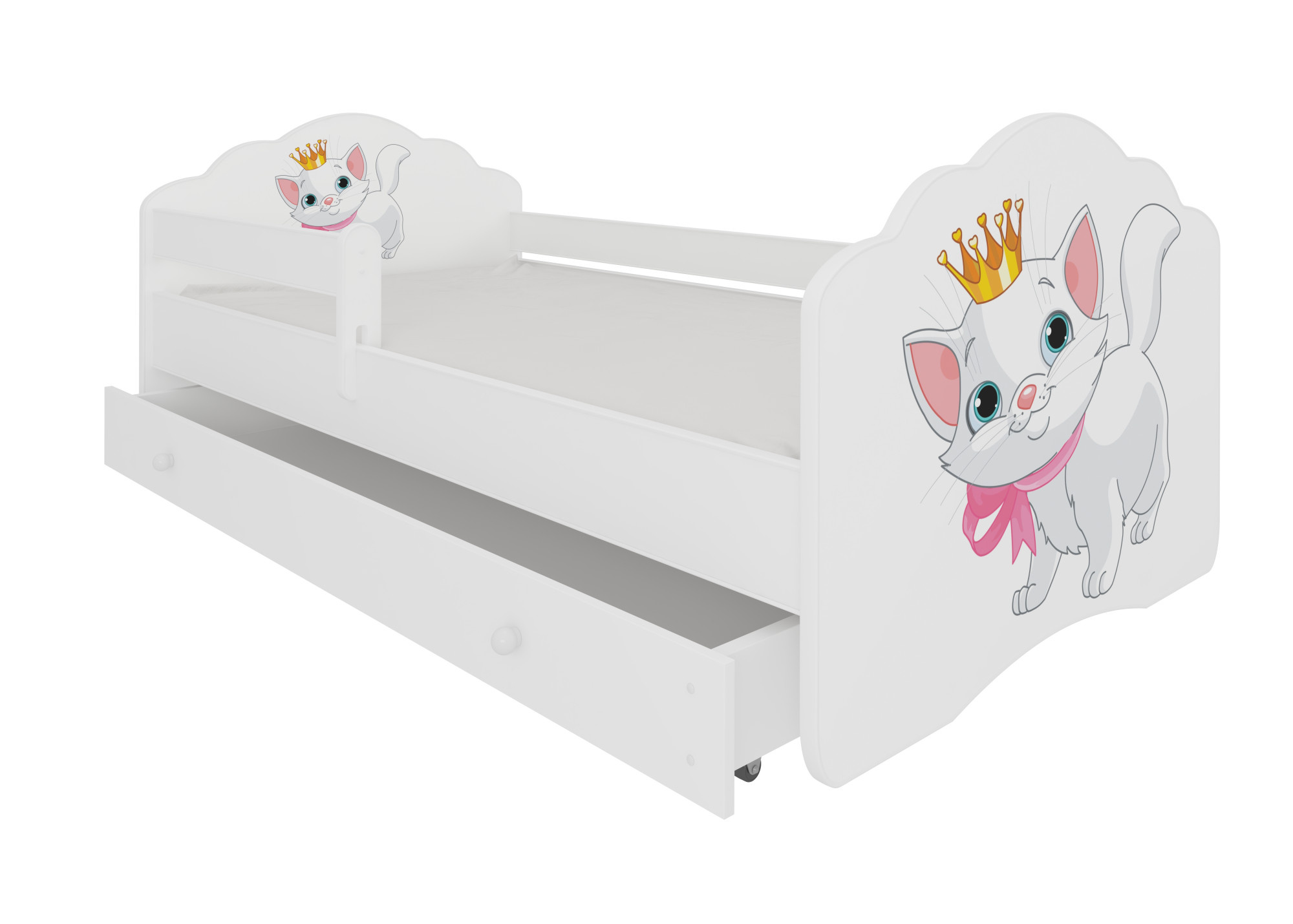 Postel s matrací, zábranou a šuplíkem CASIMO CAT 140x70 Bílá
