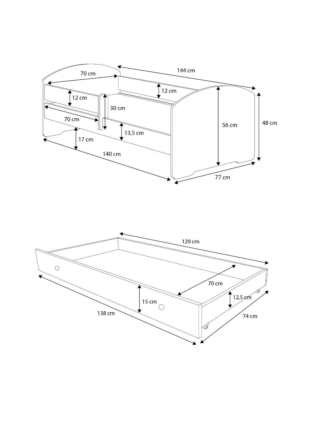 Jednolůžková postel z kolekce PEPE s jednoduchým designem v matné bílé barvě se skvěle hodí do interiéru dětského pokoje. Díky velkému výběru grafik snadno vybereš model, který nejlépe odpovídá zájmům tvého dítěte. V procesu výroby byly použity ekologické vodní barvy, které jsou bezpečné a odolné vůči mechanickému poškození. Navíc postel nemá ostré rohy a grafika je chráněna laminátem. Postel obsahuje praktickou zásuvku na ložní prádlo. Velkou výhodou je ochranná zábrana zajišťující bezpečnost během spánku, stejně jako snímatelný potah matrace na zip, který lze snadno sundat a vyprat. Co více, pokud potřebujete další místo na spaní, doporučujeme se seznámit s modelem PEPE II, který má zásuvku s funkcí spaní.