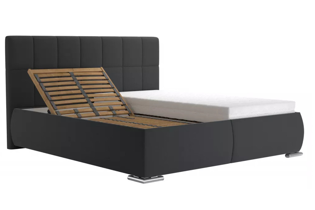 Postel Saskie se pyšní pečlivým zpracováním s osobitým designem. Tato postel Vám poskytne příjemnou oázu pro odpočinek a ráno budete vstávat příjemně odpočinutí a svěží. V ceně postele jsou lamelové rošty s písty a velmi pohodlné matrace s výškou 21 cm. Rošty mají 28 lamel s možností nastavení tuhosti, mechanickým polohováním hlavy a nohou a popruhem proti přetížení. Matrace má konstrukci se speciálně strukturovaným povrchem, který při spánku garantuje vynikající přizpůsobení Vašemu tělu. Díky speciálnímu zámkovému systému, je matrace vyrobena bez použití lepidel. Jádro je složeno z desek z polyuretanových pěn s nižší (žlutá pěna) a vyšší (růžová pěna) tuhostí, takže si můžete vybrat stranu, která bude pro Vaše pohodlí při spánku nejlepší. Matrace je opatřena kvalitním snímatelným potahem, který je pratelný na 60 st. Postel je také vybavena velkým úložným prostorem, který je přístupný od nohou. Postel je dodávána v demontu.